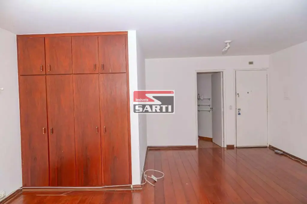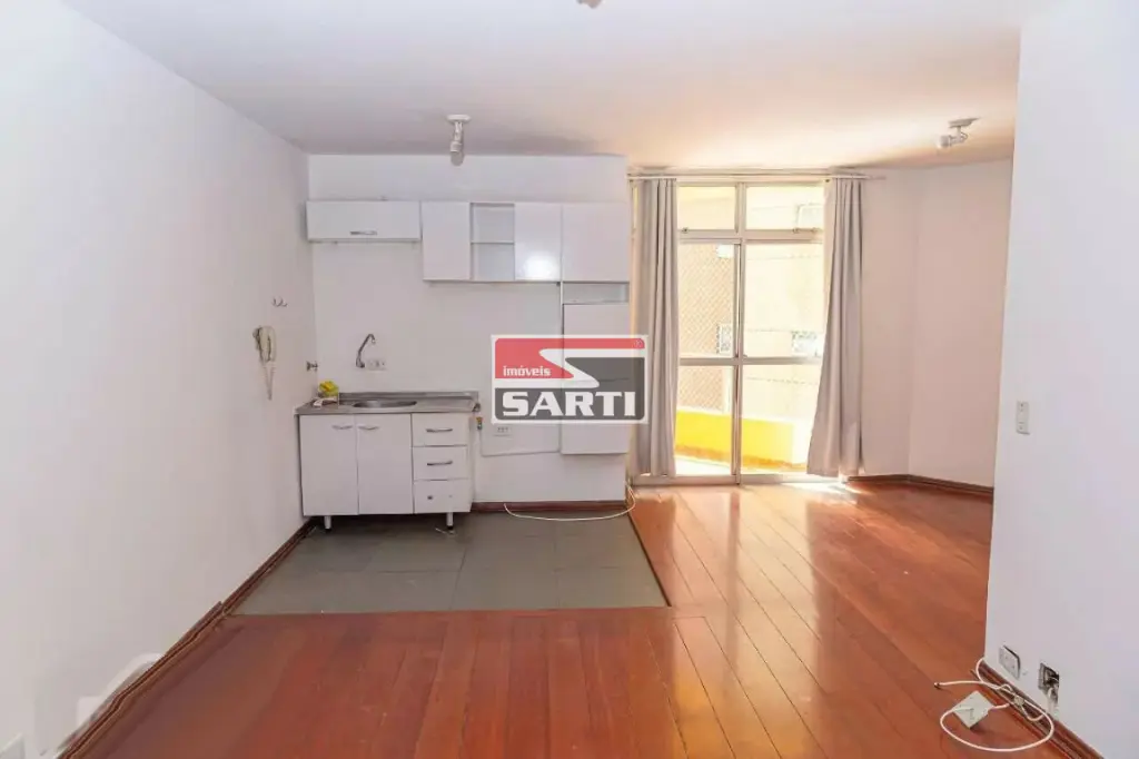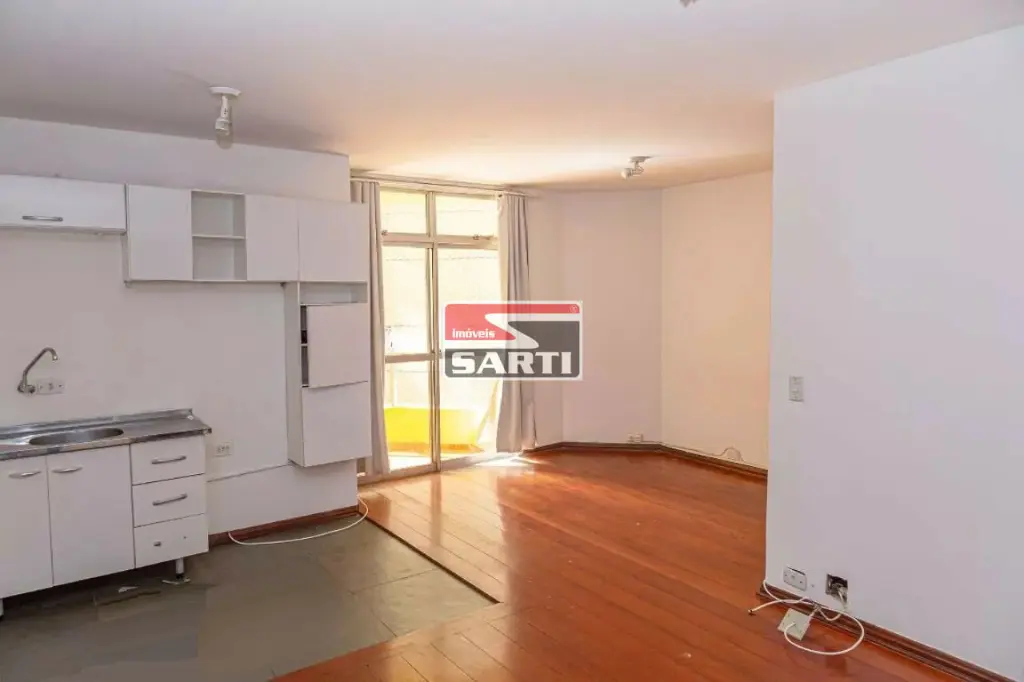Apartamento tipo Studio moderno, recém-reformado, de 35m² com piso de madeira com sinteco novo, pintura renovada ambientes claros, aconchegantes e funcionais, com dormitório integrado e varanda que traz luz natural e uma vista urbana charmosa.