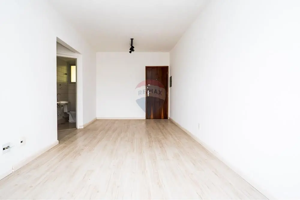 Sala ampliada com 2 ambientes, piso laminado, cozinha com armário, 1 banheiro e 1 lavabo com janela