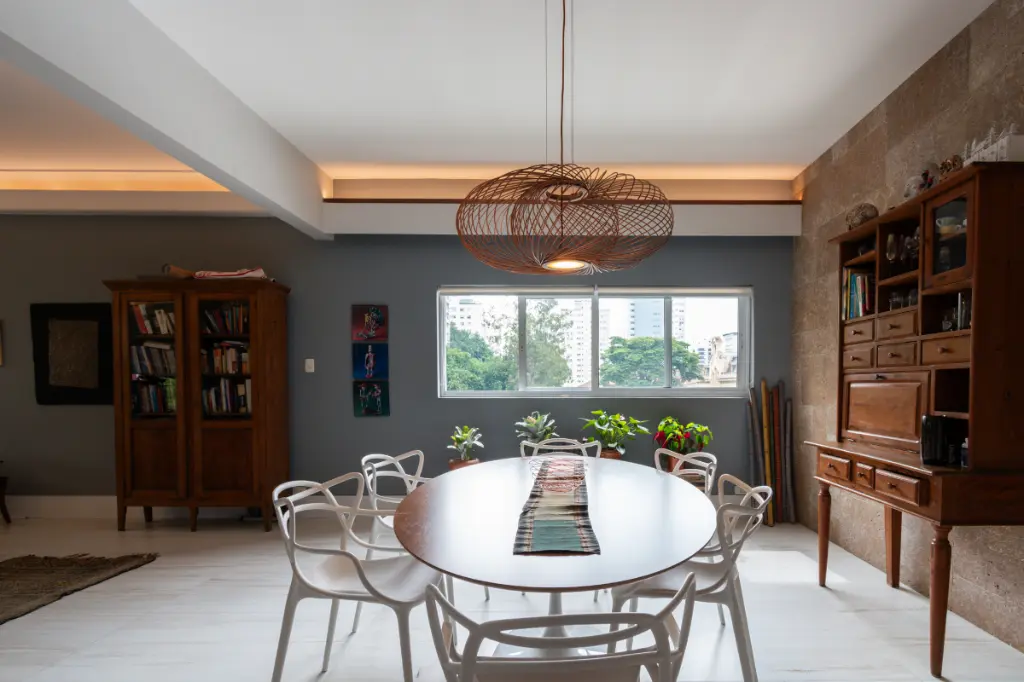 O imóvel foi completamente reformado com alto padrão de acabamento, preservando a essência da planta original e elevando cada detalhe com sofisticação. Os ambientes são amplos, bem distribuídos e recebem iluminação natural abundante, criando uma atmosfera acolhedora e contemporânea.