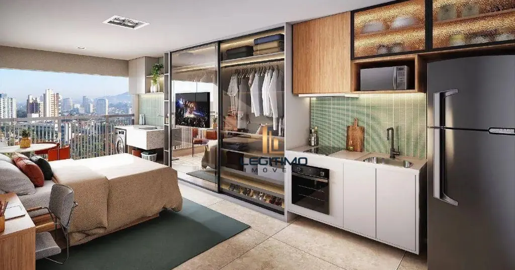 Apartamento com 1 dormitório projetado com entrada de luz natural, infraestrutura completa para ar condicionado, espaço com máxima otimização.