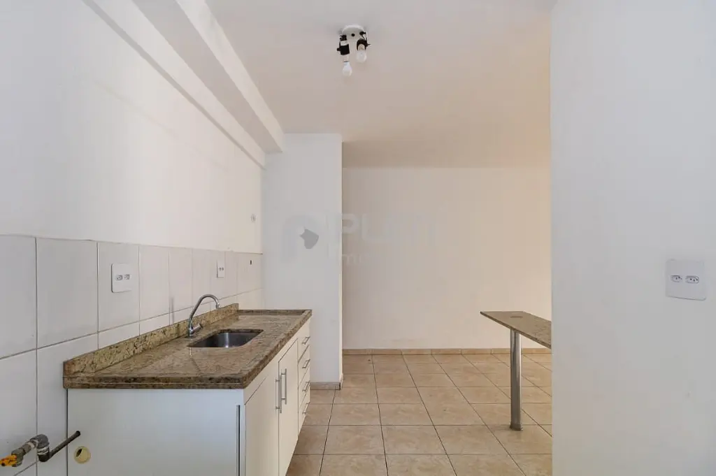 Uma característica notável deste apartamento é a integração da cozinha com a sala de estar. Esse design moderno cria um ambiente aberto e