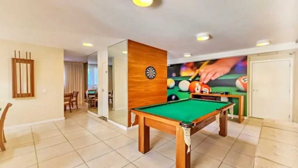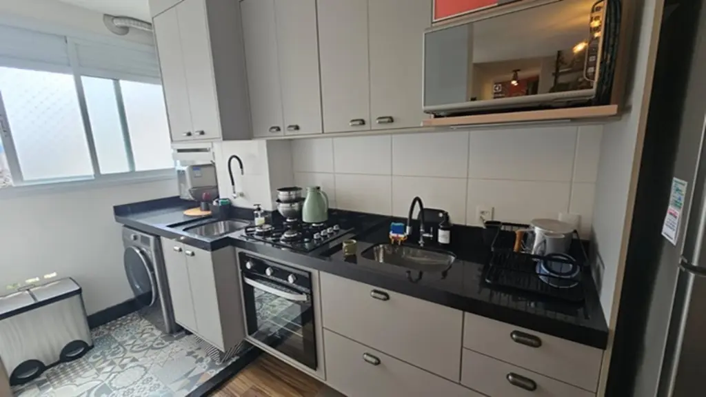 A cozinha planejada oferece funcionalidade e organização, integrada à área de serviço. O banheiro possui ótimo acabamento e o apartamento dispõe de 1 vaga de garagem, garantindo comodidade no dia a dia, lazer com Salão de Festas, Salão de Jogos, Academia, Churrasqueira, Piscina, Playground, localização Estratégica no Jardim Íris.