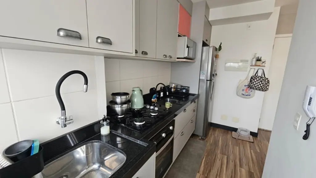 O imóvel conta com 2 dormitórios, sendo 1 com armários planejados, proporcionando praticidade e melhor aproveitamento de espaço. A sala é ampla e bem iluminada, com sacada, ideal para momentos de descanso e convivência.