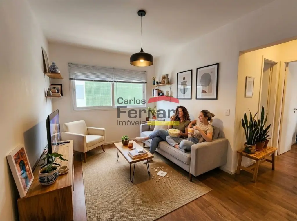 Ambientes bem distribuídos: O apartamento foi projetado para aproveitar cada metro quadrado de maneira inteligente. A sala aconchegante oferece espaço suficiente para um ambiente confortável e bem decorado, ideal para momentos de descanso ou para receber amigos.