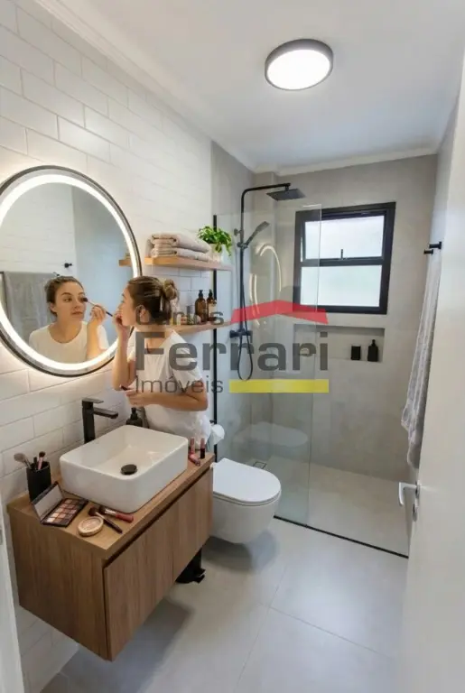 Banheiro social confortável: O banheiro possui um bom tamanho e estrutura ideal para atender às suas necessidades diárias com conforto e privacidade.
