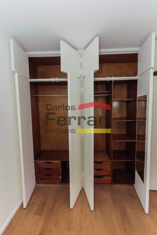 Roupeiro prático no acesso ao dormitório: Um detalhe que faz toda a diferença na organização do espaço! Logo na entrada do quarto, há um roupeiro de ótimo tamanho que agrega ainda mais funcionalidade ao apartamento.