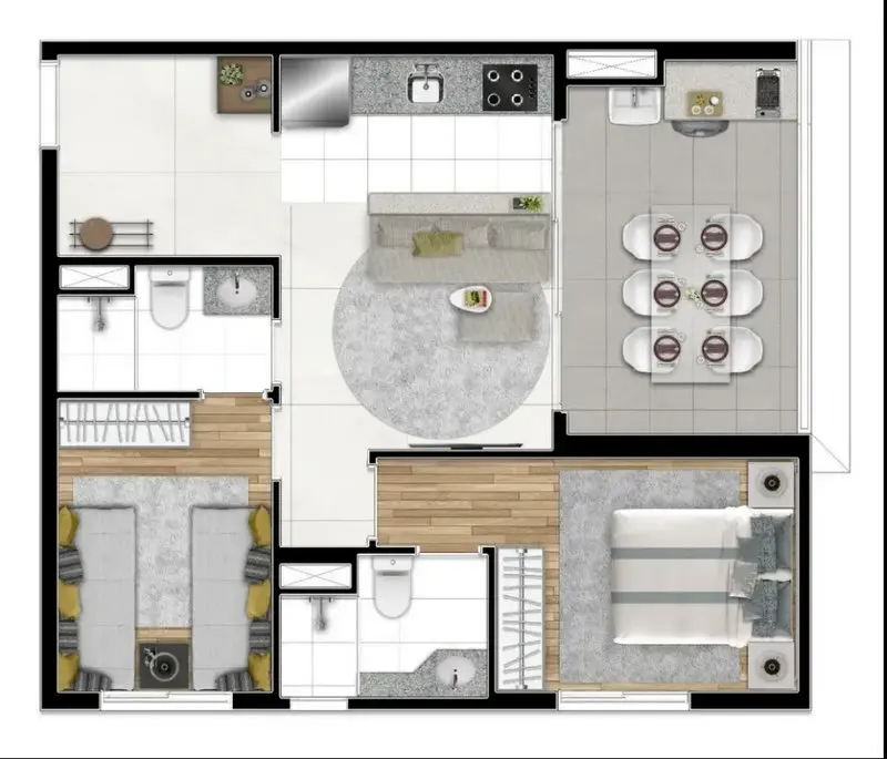 53 m² (2 Dormitórios + Vaga Carro): De R$ 727.349 por R$ 690.982 (HMP)