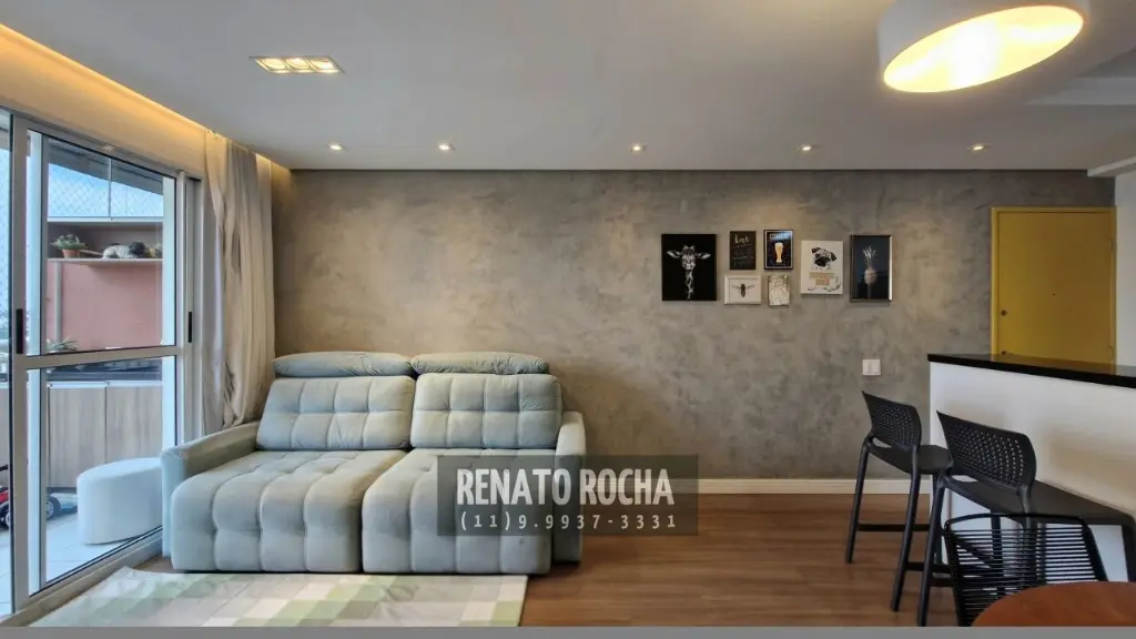Possui 3 dormitórios, sendo 1 suíte, banheiro social, sala ampla para dois ambientes com teto rebaixado em gesso e iluminação indireta, sacada grill envidraçada, cozinha em conceito aberto integrada à sala e lavanderia.