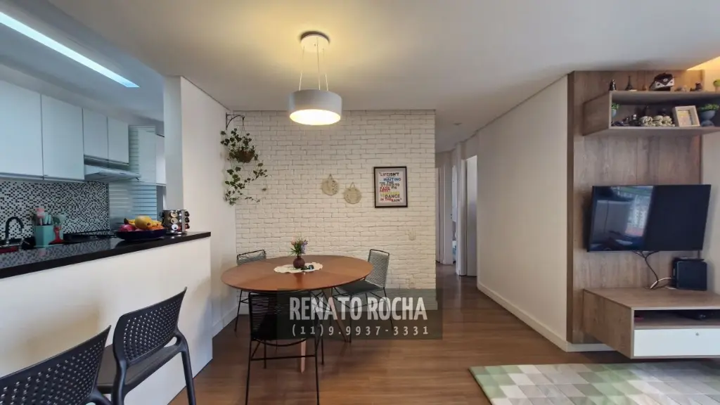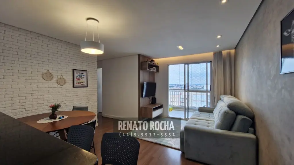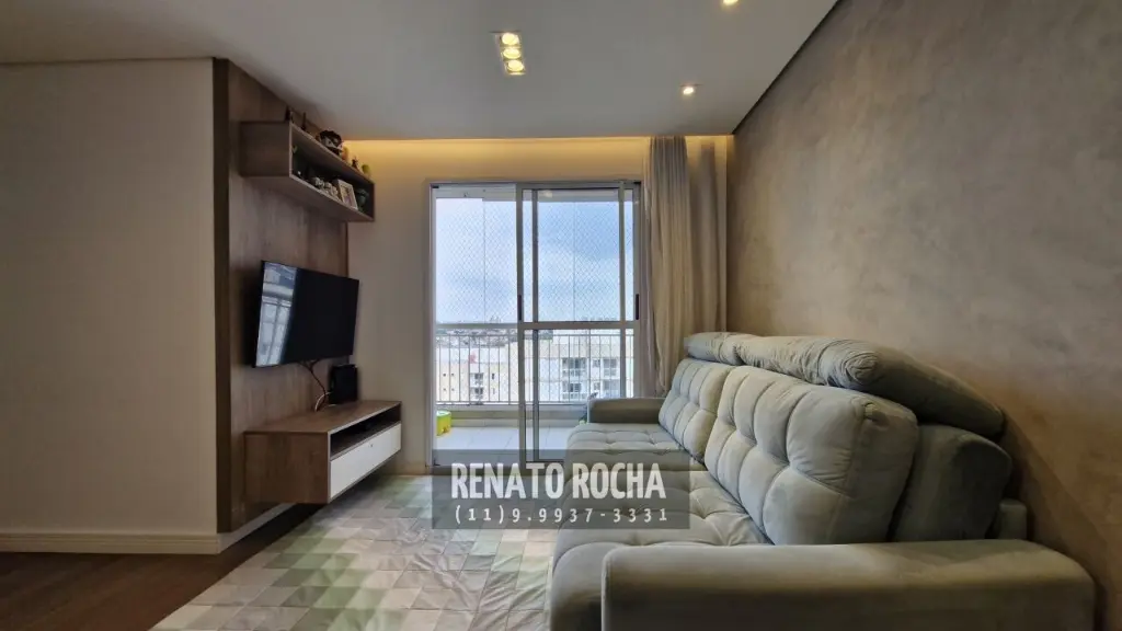 Possui 3 dormitórios, sendo 1 suíte, banheiro social, sala ampla para dois ambientes com teto rebaixado em gesso e iluminação indireta, sacada grill envidraçada, cozinha em conceito aberto integrada à sala e lavanderia.