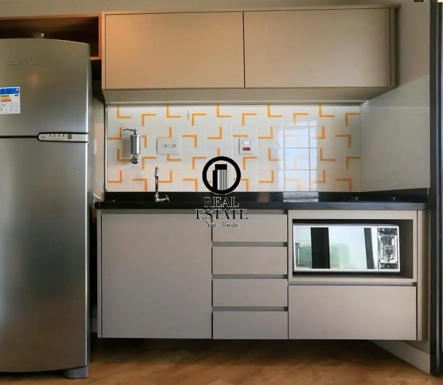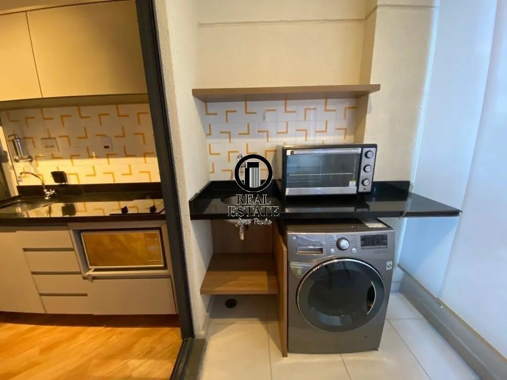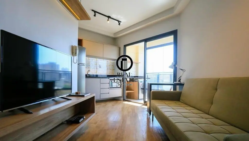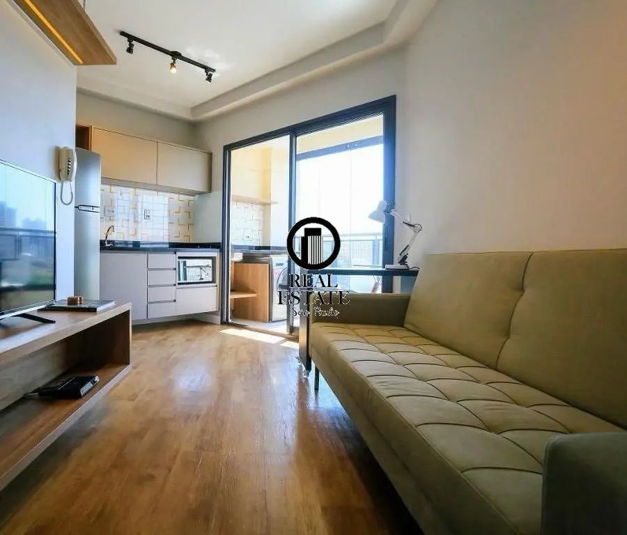 Apartamento à Venda - 32m, 1 Quarto, 1 Vaga - Pinheiros Imóvel especial, semi-novo, arquitetura autoral com móveis do designer Fernando Jaeger. Não há nenhum semelhante no prédio. O apto é de 1 Suíte, Sala, Cozinha integrada e Varanda gourmet com fechamento envidraçado. Está 100% equipado com Ar Condicionado em todos ambientes (inclusive varanda), Geladeira inox com freezer, Cooktop vitrocerâmico, Forno elétrico, Microondas, TV 40?, Lava-Seca, iluminação LED, marcenaria de primeira linha, Sofá-cama, mesa de trabalho, cama Queen-Size e Blackout.