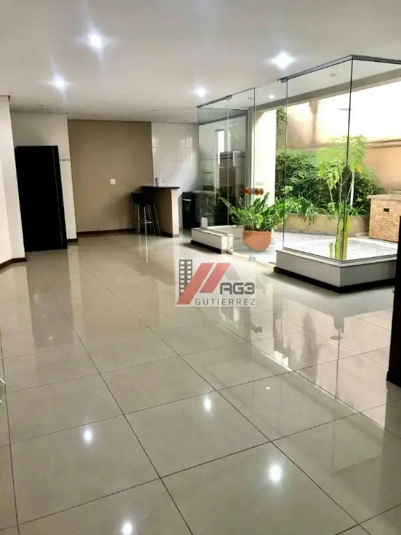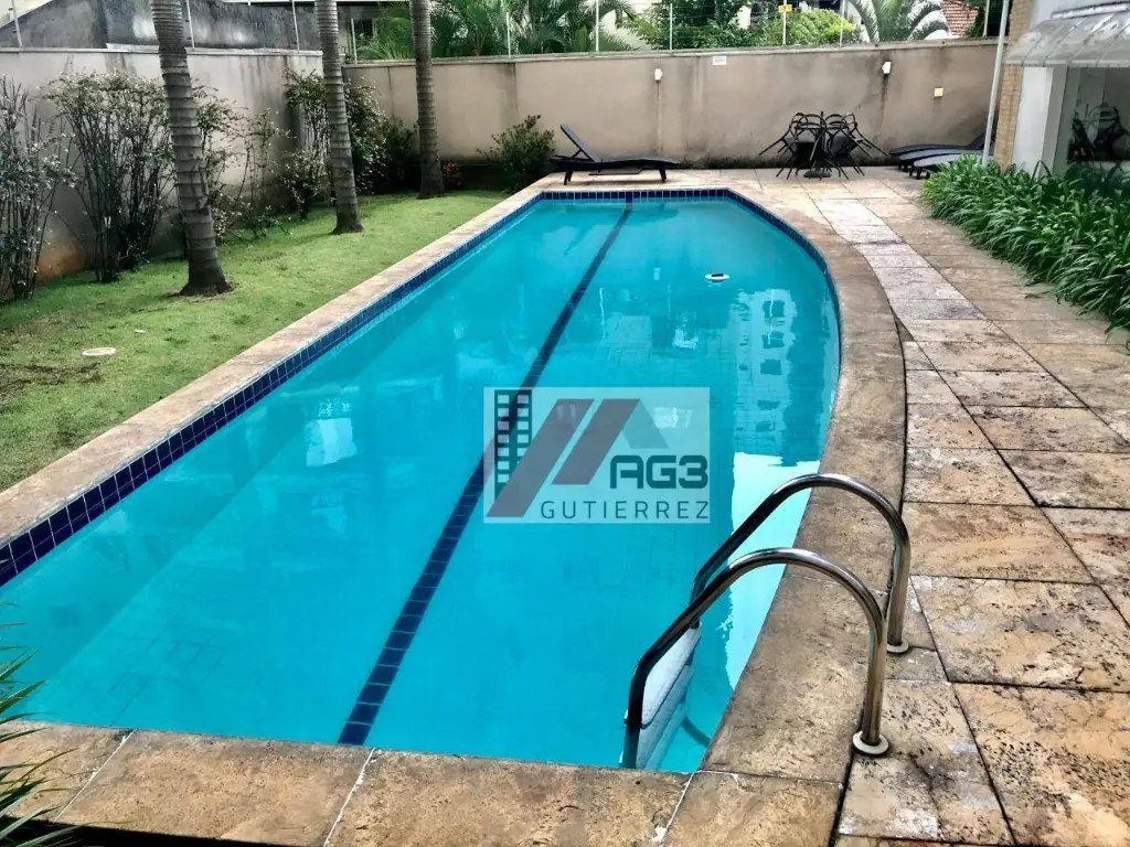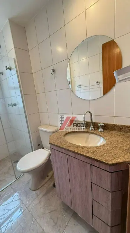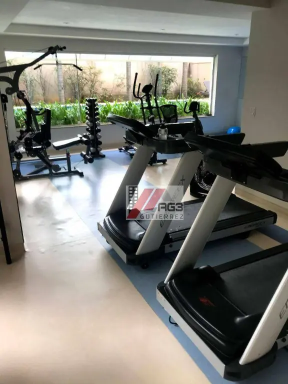 O condomínio conta com uma área de lazer com piscina, academia, salão de festas e sauna, além de portaria 24 horas.
