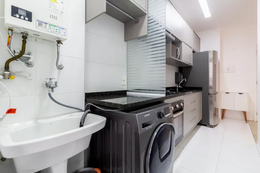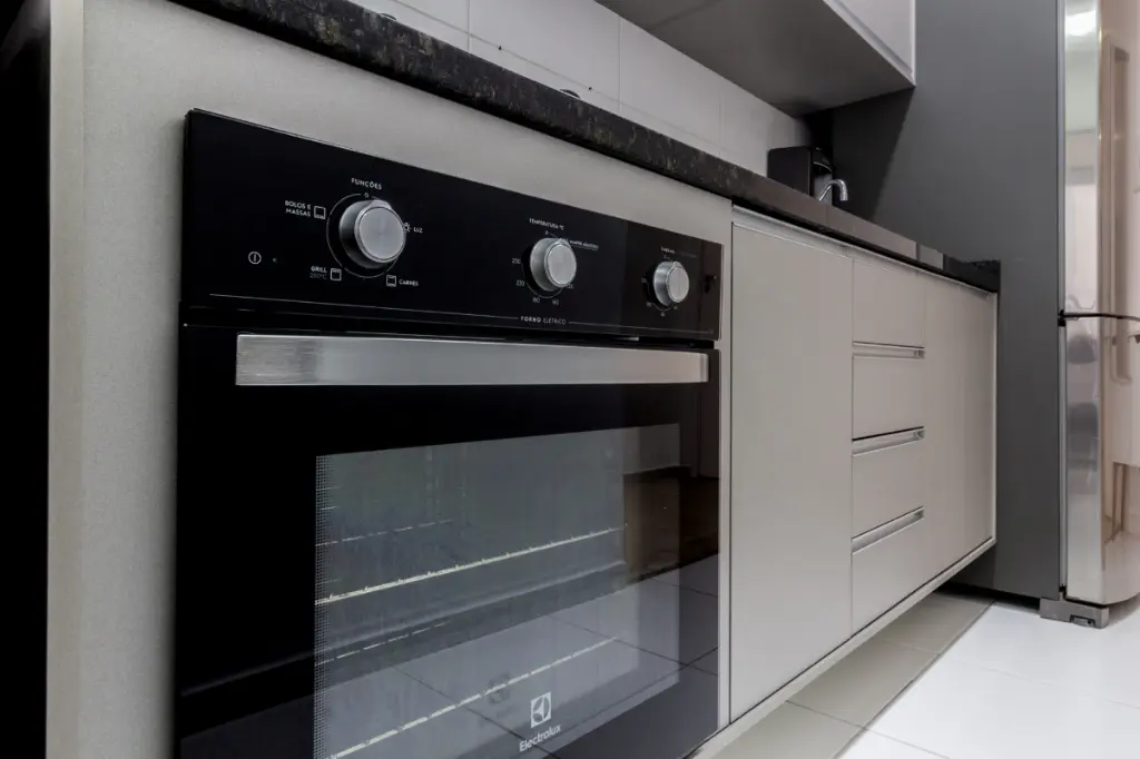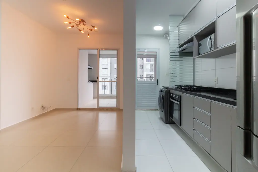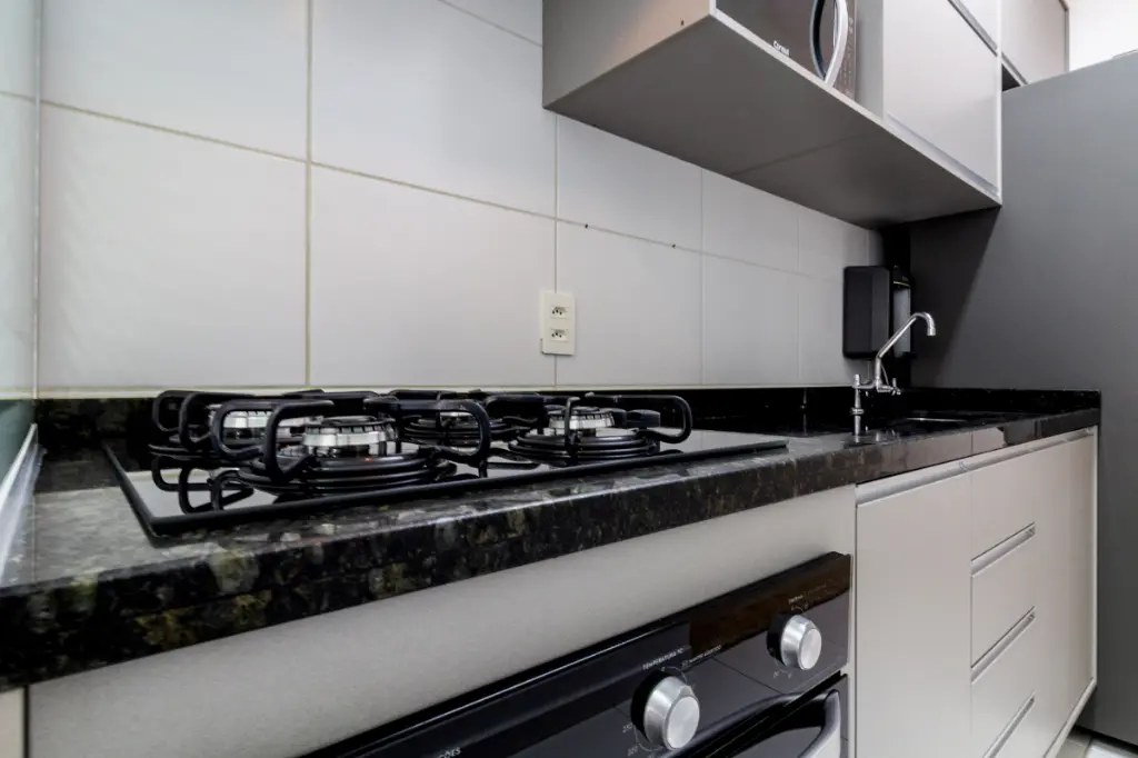 Cozinha equipada com eletrodomésticos e acesso direto a varanda gourmet;