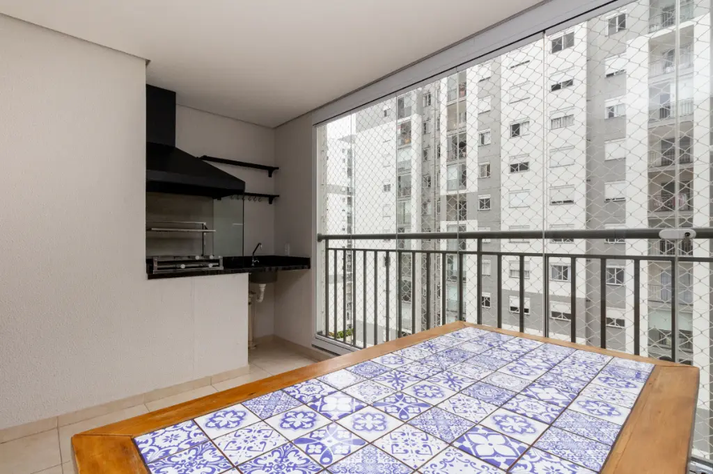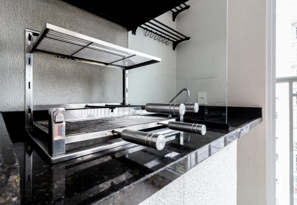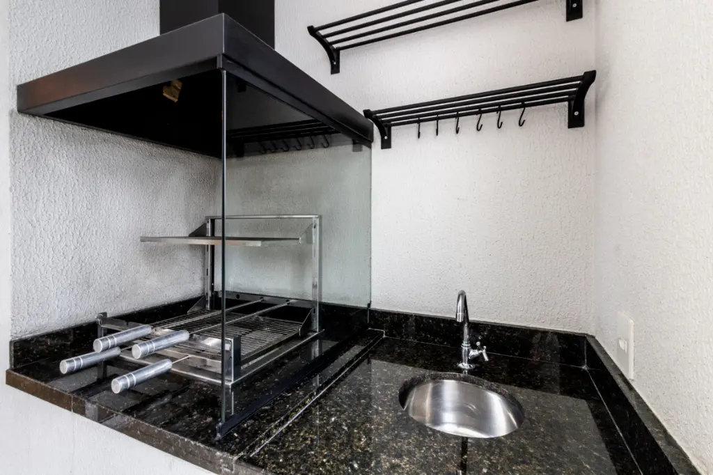 Varanda com churrasqueira a carvão;