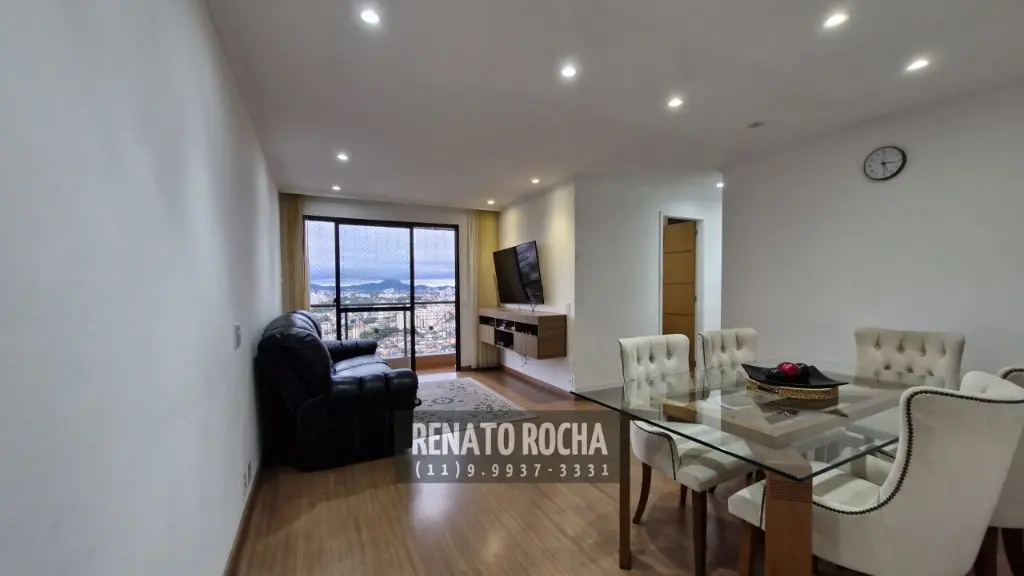 Apartamento em andar alto, com ambientes amplos e ótima iluminação natural. O imóvel possui 3 dormitórios, sendo 1 suíte, além de banheiro social. Conta com sala ampla para dois ambientes, com teto rebaixado em gesso e iluminação indireta, varanda com bela vista do bairro, cozinha espaçosa e área de serviço. O apartamento dispõe de 2 vagas de garagem.