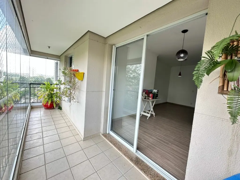 Apartamento com 75 m² em condomínio com 2 torres. Apartamento com telas de segurança. Com 3 quartos, sendo 1 com suíte, planejados, banheiro social. Sala ampla, integrada ao terraço amplo fechado com vidro e tela de segurança.
