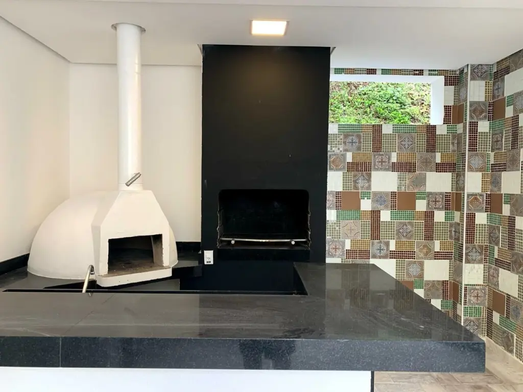 Área gourmet com forno de pizza e a lenha