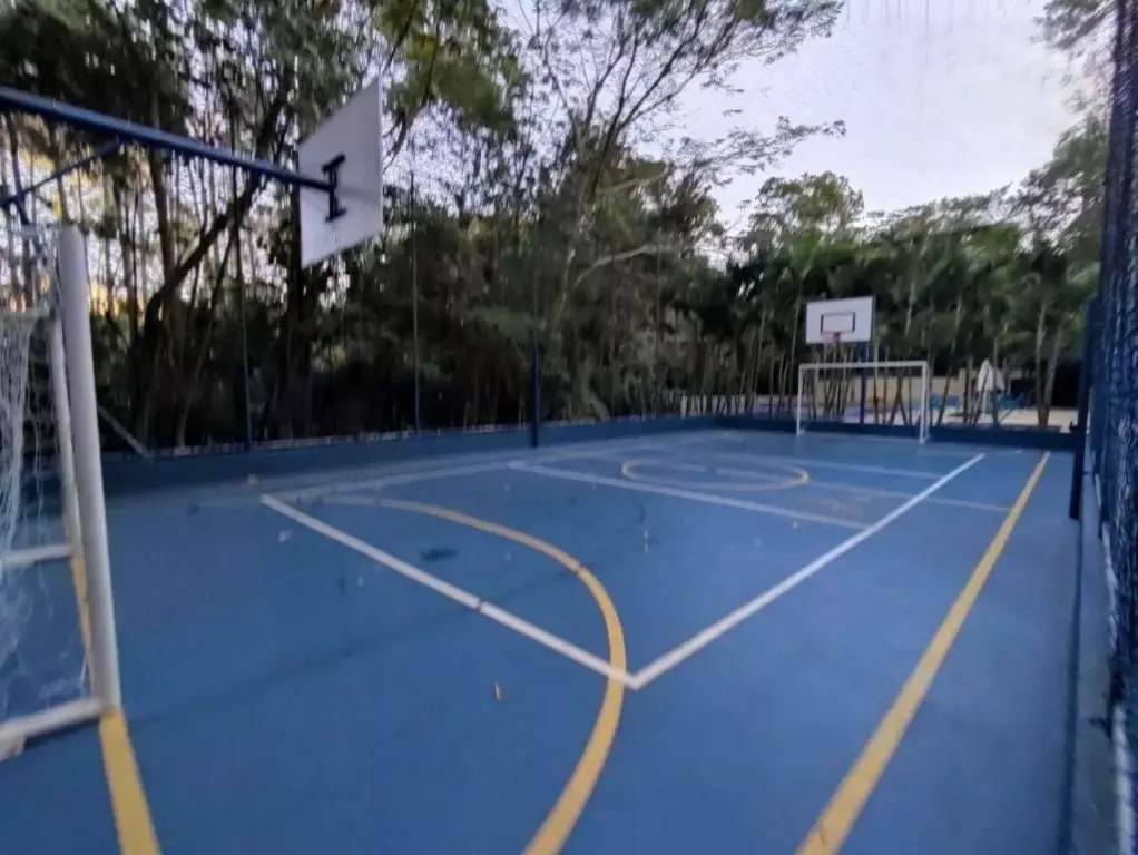 Quadra poliesportiva e playground para atividades ao ar livre