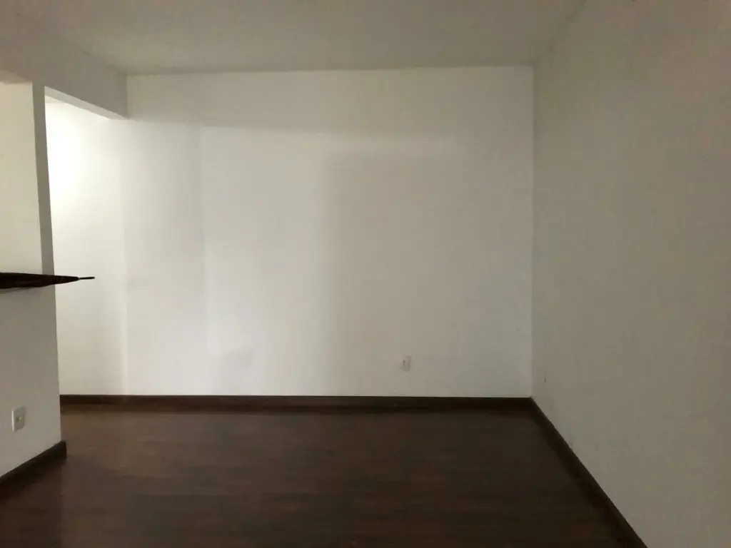 O apartamento é revestido com piso de madeira de lei, exceto nos banheiros, cozinha e área de serviço.