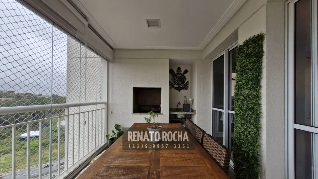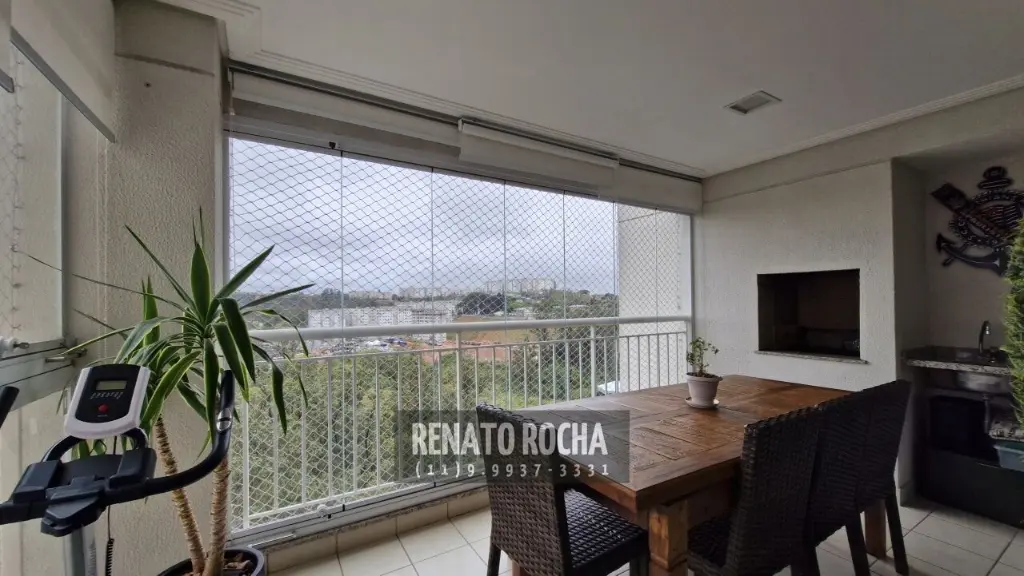 O imóvel dispõe de sala ampla, com espaço para dois ambientes, varanda gourmet com churrasqueira e fechamento em vidro, lavabo, espaço para home office, cozinha independente e lavanderia com entrada de serviço. Conta ainda com três dormitórios, sendo uma suíte, além de banheiro social. Possui armários planejados na cozinha, nos dormitórios e nos banheiros. Dispõe de duas vagas de garagem.