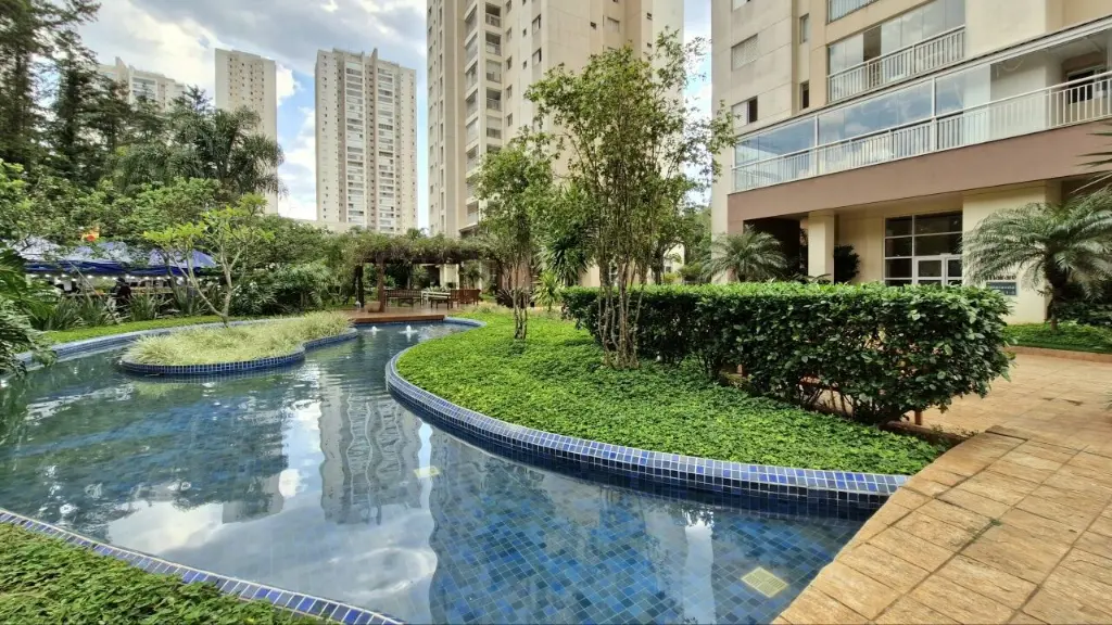 O condomínio oferece diversas opções de lazer, como salão de festas, espaço gourmet, piscina, churrasqueira, quadra de esportes e portaria 24 horas.