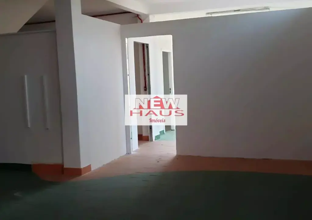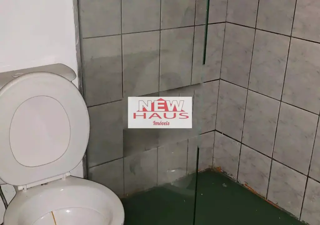 Piso inferior, salão aberto com divisórias em drywall, nos fundos 01 cozinha, 02 banheiros com box para chuveiro e lavatório e churrasqueira;