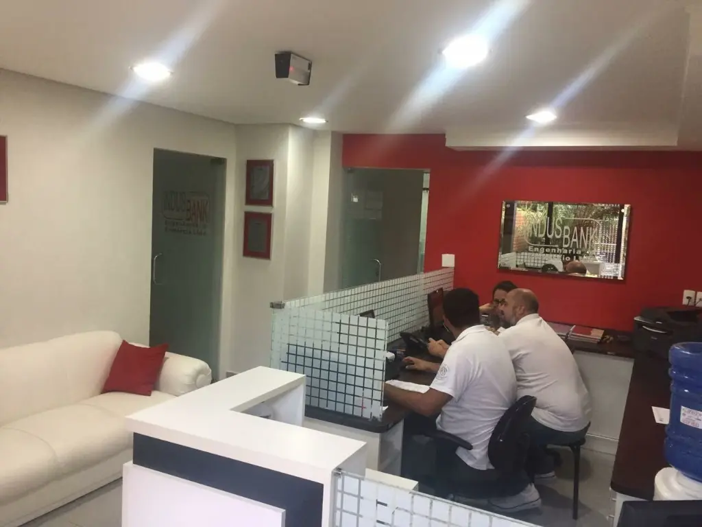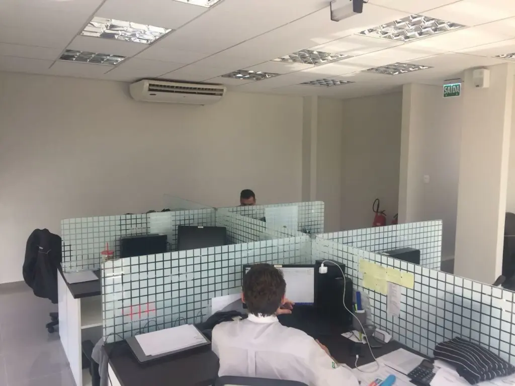 Sendo no térreo- recepção, sala técnica, sala do financeiro, sala do MINI .sala da diretoria, copa e 1 banheiro.