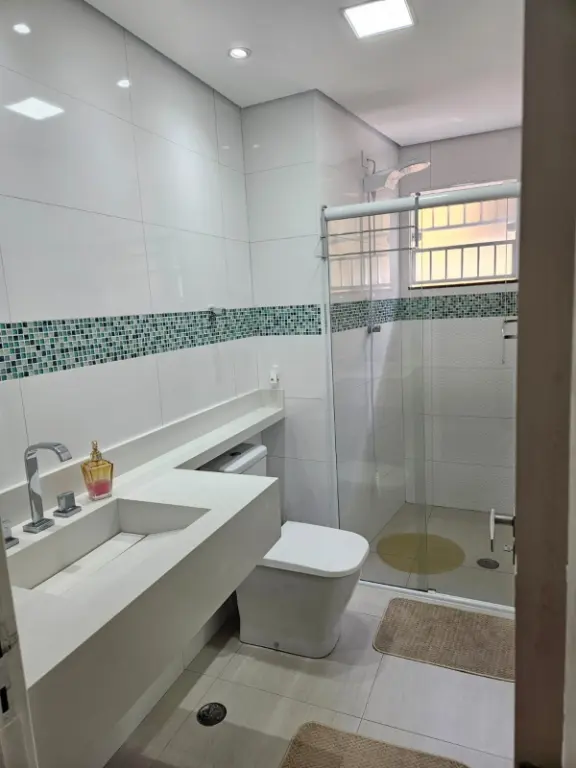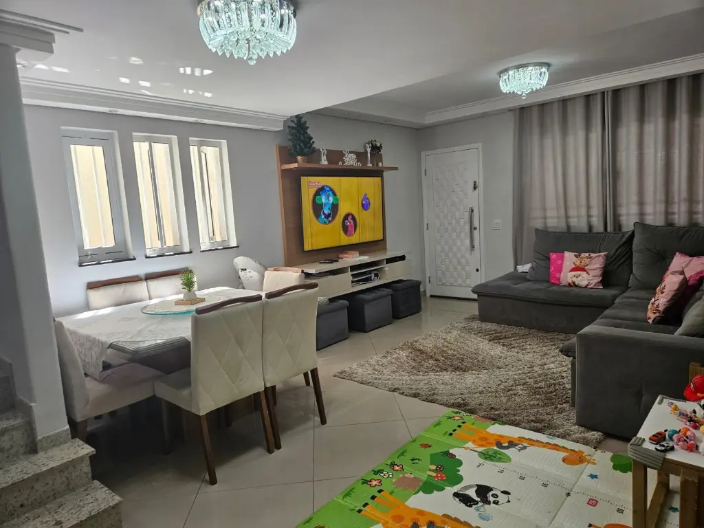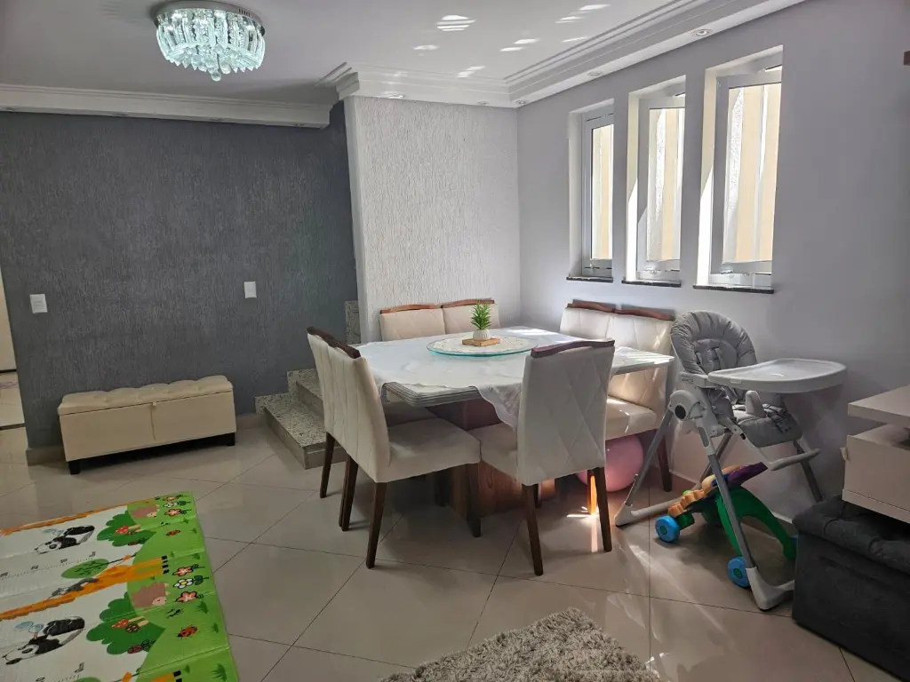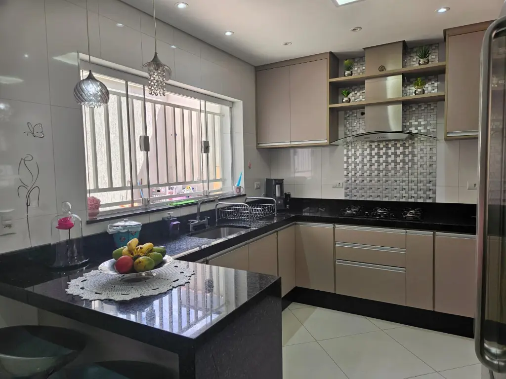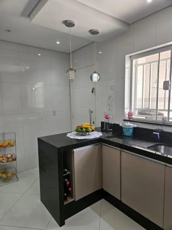A casa de 133m² está em perfeito estado, conta com 3 quartos, cozinha espaçosa toda planejada, escada em granito que dá acesso aos quartos, 2 banheiros com box de vidro e gabinete, uma sala ampla e iluminada.