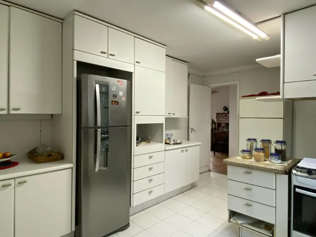 São três dormitórios sendo uma suíte, todos os quartos com armários embutidos, possibilidade para 3 suítes. Sala ampla e iluminada por janelões do teto ao chão. Varanda espaçosa e possibilidade de terraço sob telhado no pavimento superior. Cozinha grande como de casarões, ampla e arejada a área de serviço é completa e conta com lavanderia grande e ventilada, banheiro de serviço e dormitório.