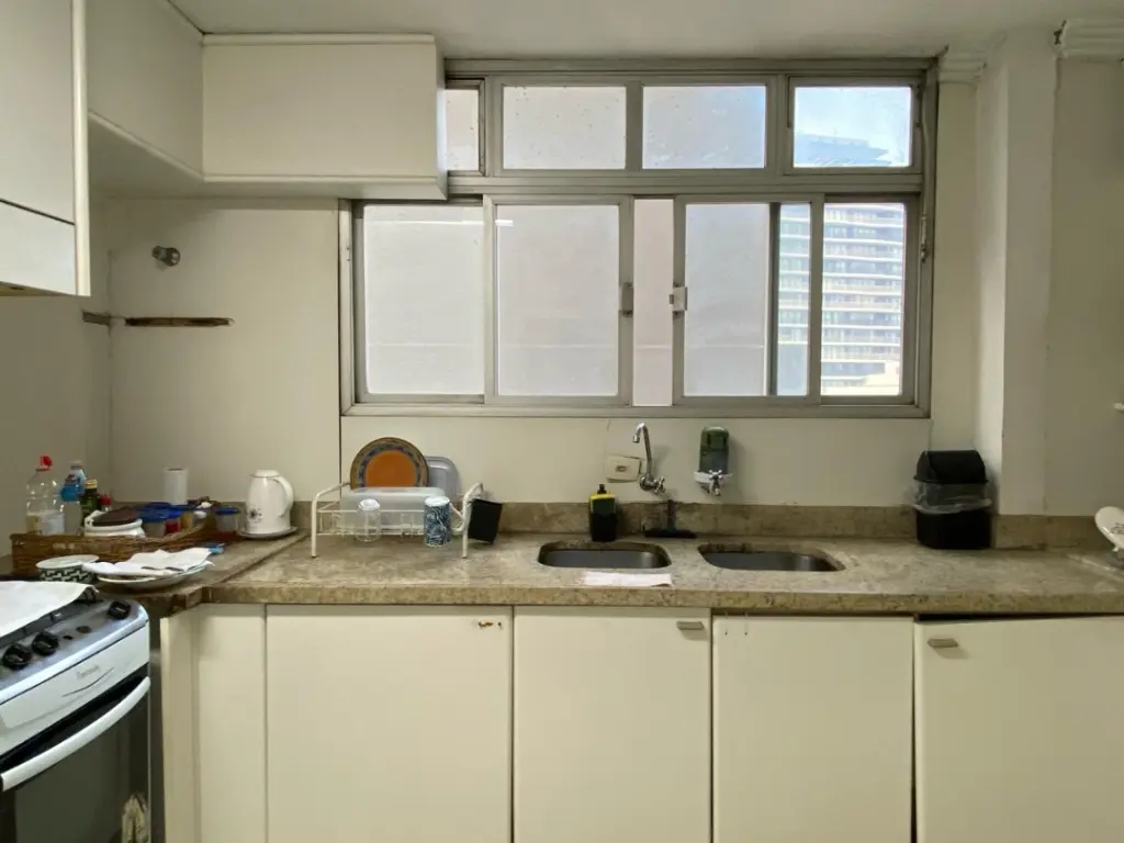 O imóvel está pronto para ser personalizado, um banquete para qualquer arquiteto, o edifício é modernista, muito elegante com pastilhas e mosaicos portugueses.