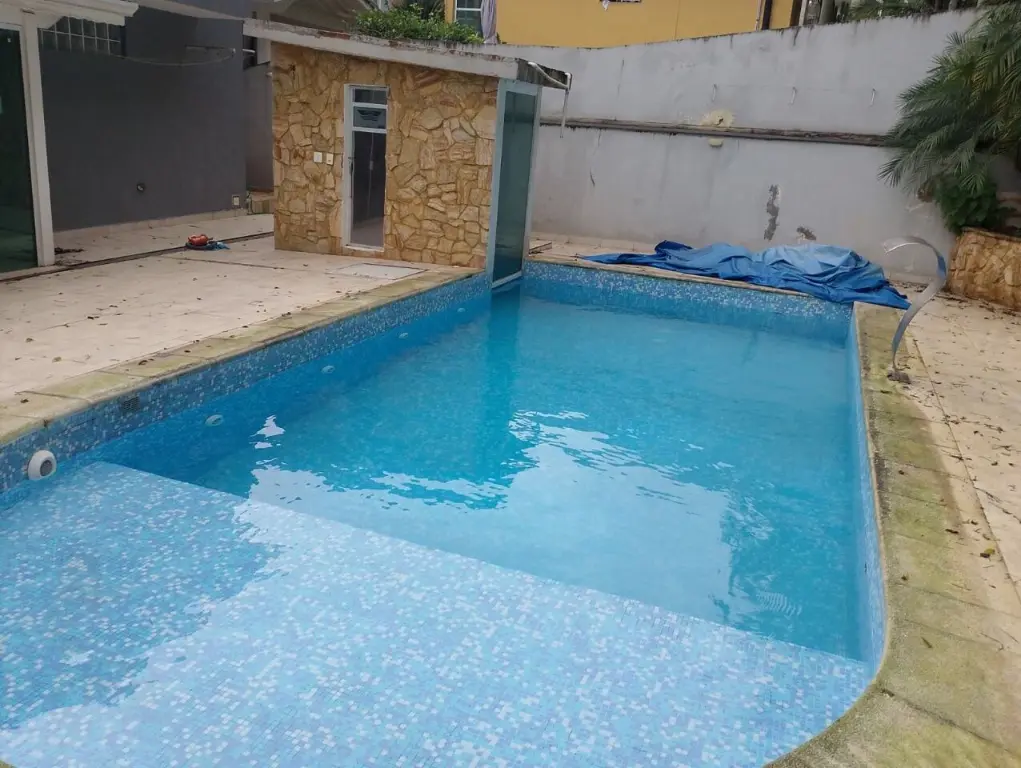 Paraíso particular: Desfrute de uma piscina convidativa com sauna integrada, proporcionando relaxamento e bem-estar.