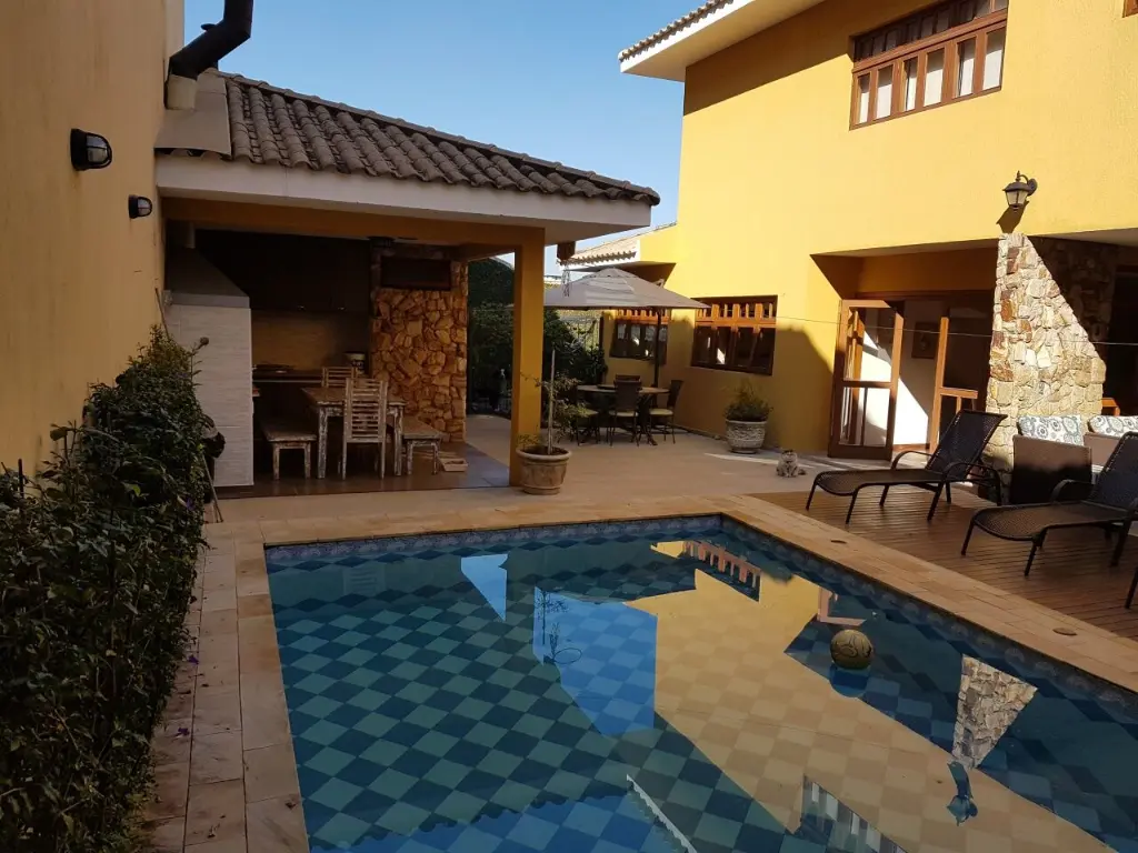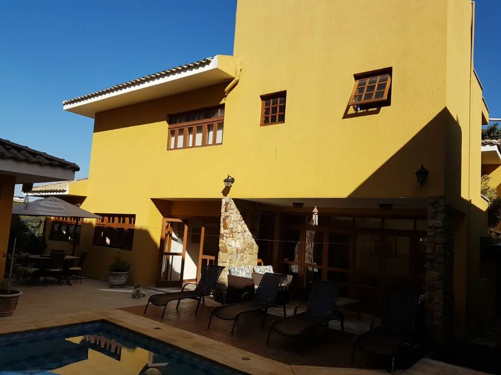 Oportunidade. Sobrado condomínio com 490 m² de área útil, com 4 suítes, quarto de empregada com banheiro, 1 vestiário, 1 lavabo, copa com cozinha, sala de jantar, duas salas de estar, sala de lareira, home theater, escritório, spa com jacuzi, sauna seca, piscina com varanda, churrasqueira e forno a lenha pizza, canil, garagem coberta para 4 carros e mais 4 carros descoberta. Ligue PAULO 9 9 9 3 7 3 9 2 4 FL21