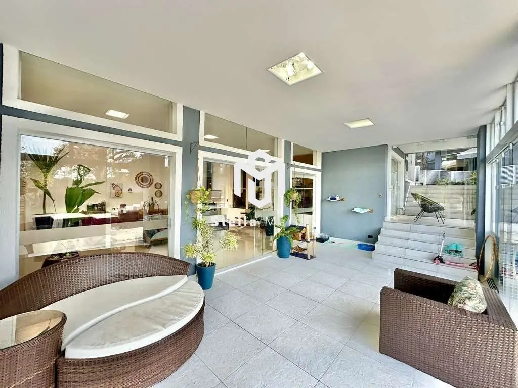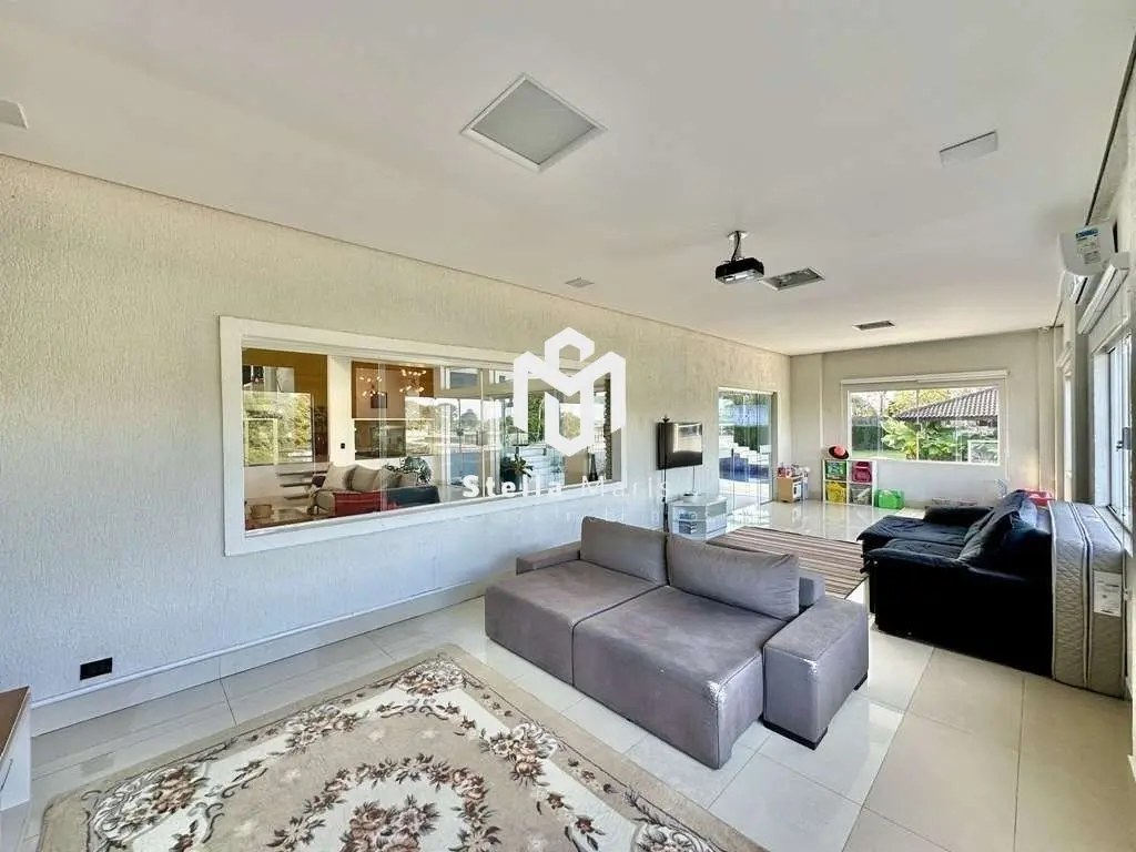 Ótima casa na Fazendinha a um quarteirão da portaria, pela entrada da esquerda. Ótima localização em final de rua tranquila e sem saída. Casa contemporânea linda, completa, avarandada, com ótimos acabamentos. Imóvel repleto de armários. Projeto de iluminação. Pisos em porcelanato, cerâmica, pedras e antiderrapante na área externa. Louças e metais de qualidade. Telhas de concreto. Fechaduras da porta social com senha e digital. Fechadura da porta da cozinha com senha. Sistema de segurança com cerca elétrica, 13 câmeras e central de monitoramento. PABX. 3 acessos: social, lazer e serviço. Hall de entrada social por uma porta pivotante imponente. Lavabo decorado com tampo de granito black. Escritório planejado com 2 estações de trabalho, estantes, bancadas e armários. Escada com estrutura metálica, revestida em madeira, com guarda corpo de vidro e metal. Espaço para adega ou depósito embaixo da escada. Hall íntimo no piso superior com 2 estações de trabalho planejadas em nicho ou espaço para roupeiro. 4 suítes com closets, repletas de armários, ar-condicionado Inverter Q e F, sendo 3 stes voltadas para grande terraço em ?L?, com guarda corpo de vidro e metal, sendo a master com grande closet. Banheiros com tampos em granito verde Ubatuba, espelhos, gabinetes e box de vidro. Sendo a master com bancada em ?L?, 2 cubas e hidro dupla. Living envidraçado para 4 ambientes com pé direito alto, voltado para varanda fechada, lazer e jardim. Sala de Jantar mais reservada, bar, estar e lareira. FAMILY ROOM INTEGRADO À VARANDA - Ideal para home theater e música. Cozinha com sala de almoço repleta de armários planejados espelhados, despensa, gabinetes, balcão, tampo em ?L? em granito black, 2 cubas inox, torneira gourmet, ilha com fogão cook top 5 bocas, forno elétrico Brastemp, geladeira Side by Side Brastemp Ative, micro-ondas Consul e lava louças Brastemp Ative. Área de serviço aberta ensolarada e lavanderia fechada com 2 tanques, bancada em L, armários planejados e suíte de serviço com acesso externo. SALÃO DE FESTAS GOURMET completo, com espaço para 6 ambientes. Refeições, bar, jogos, TV, churrasqueira e forno de pizza, com bancadas, balcão em granito e 2 cubas inox com torneiras gourmet, gabinetes, espaço para fogão, chopeira, geladeira, freezer e um terraço com toldo retrátil. Vestiário com lavatório externo, que atende a área gourmet e piscina. Piscina de alvenaria revestida em cerâmica, com formato orgânico, borda infinita, hidro para 6 pessoas, com cascata, iluminada, escada interna, prainha e casa de máquinas. Sauna úmida. Depósito. ANEXO ACADEMIA NO JARDIM - envidraçada fechada (6m x 5m). Jardim com paisagismo formado. Espaço com tabela de basquete. ANEXO MULTIUSO GRANDE com ar-condicionado e tratamento acústico, sendo usado como estúdio. Ideal para música, atelier, jogos, brinquedoteca, home office. Canil com 2 baias. Oficina. Porteiro eletrônico com acesso telefônico. Portão automático. Garagem para 6 vagas, sendo 3 cobertas. ??? Sistema de energia solar fotovoltaica Aquecimento central de água: Solar com suporte elétrico. Abastecimento de água: Sabesp. Armazenamento: Caixas d?água: 4 mil litros / Boiler: 500 litros Esgoto: Fossa.