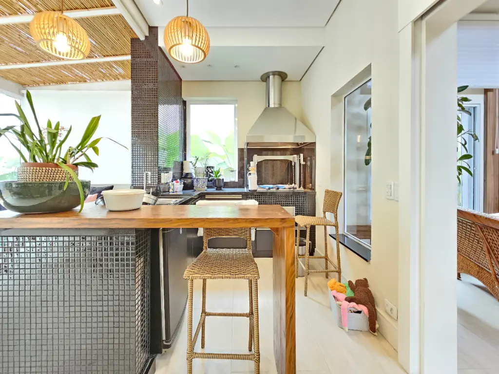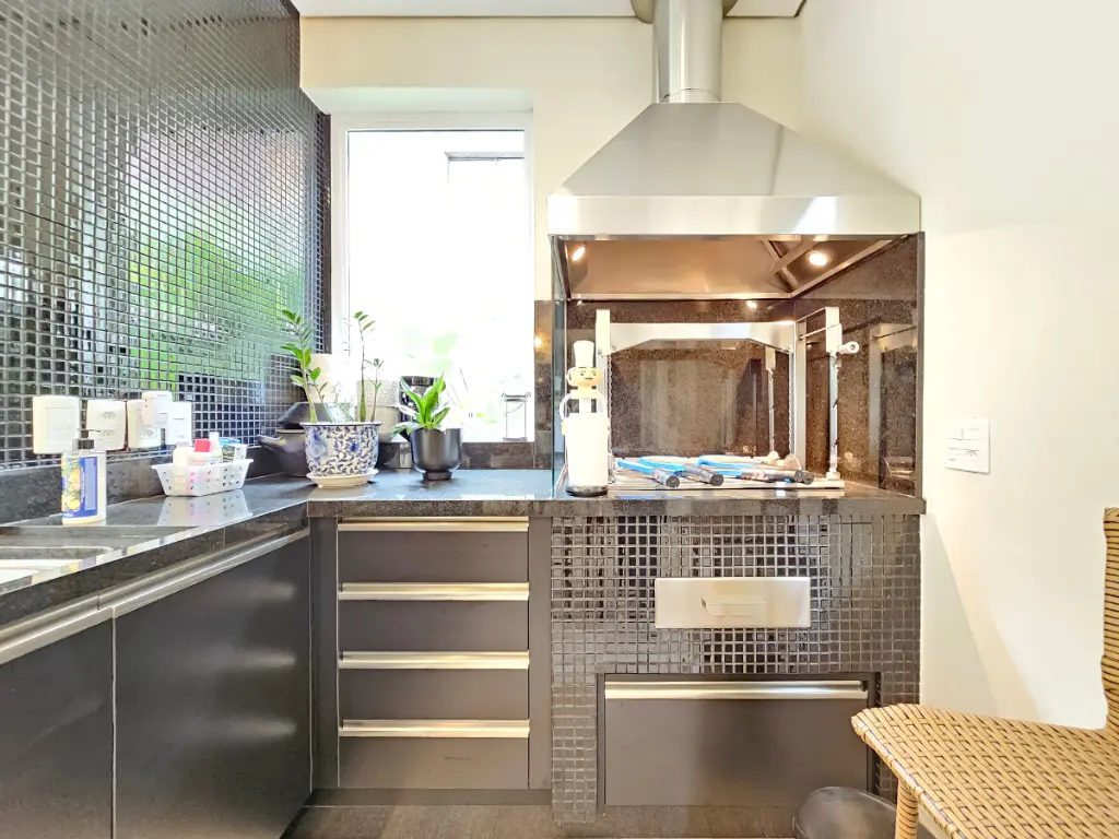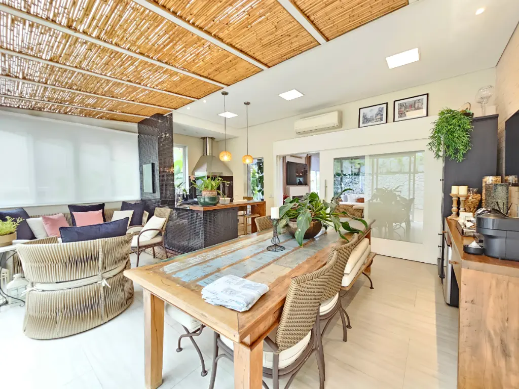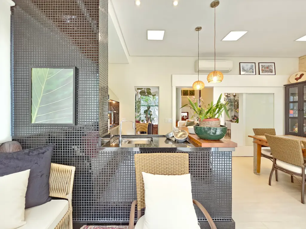 A área gourmet é um dos grandes diferenciais da casa: equipada com churrasqueira e totalmente integrada com a sala e a piscina, cria um ambiente perfeito para receber amigos e familiares. Conta ainda com um banheiro externo de apoio à área da piscina.