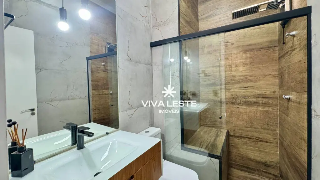 - 2 banheiros, sendo um lavabo no piso inferior