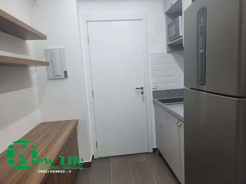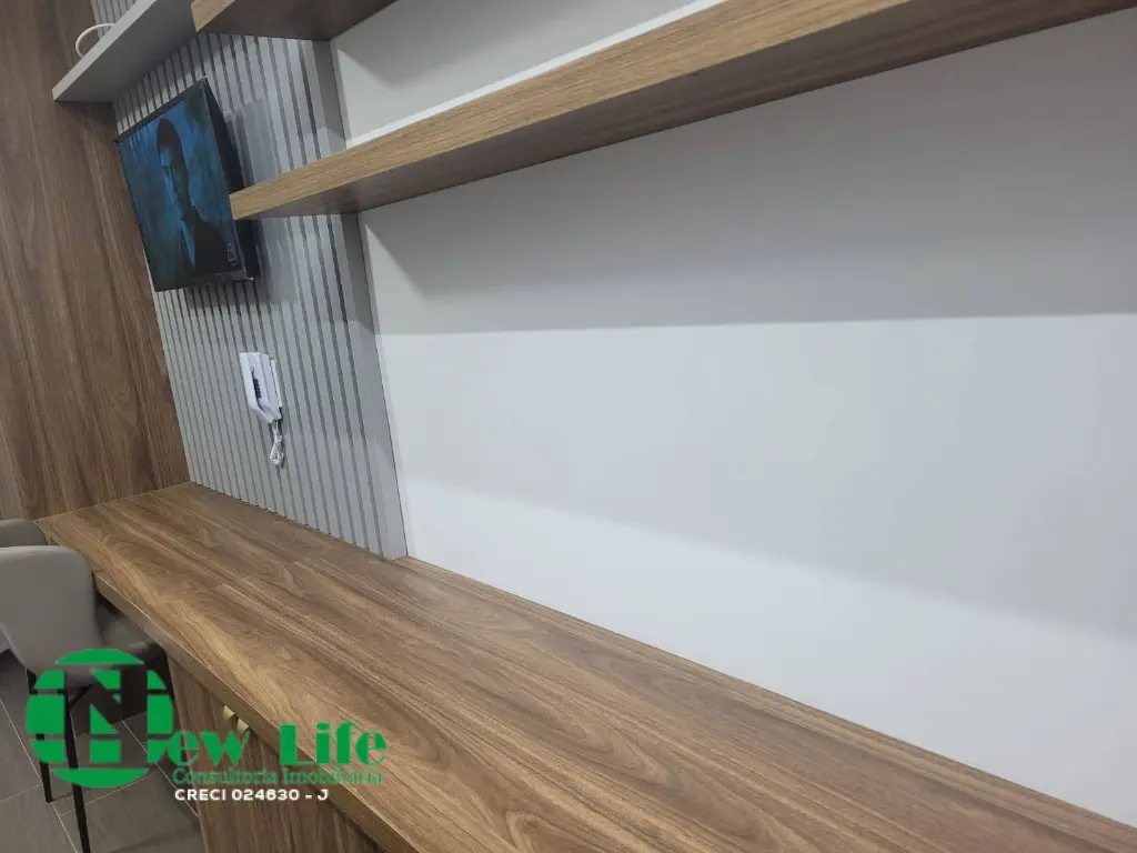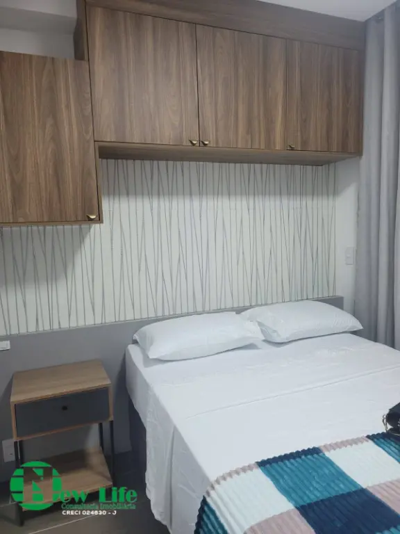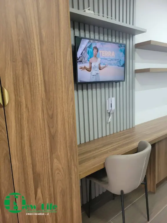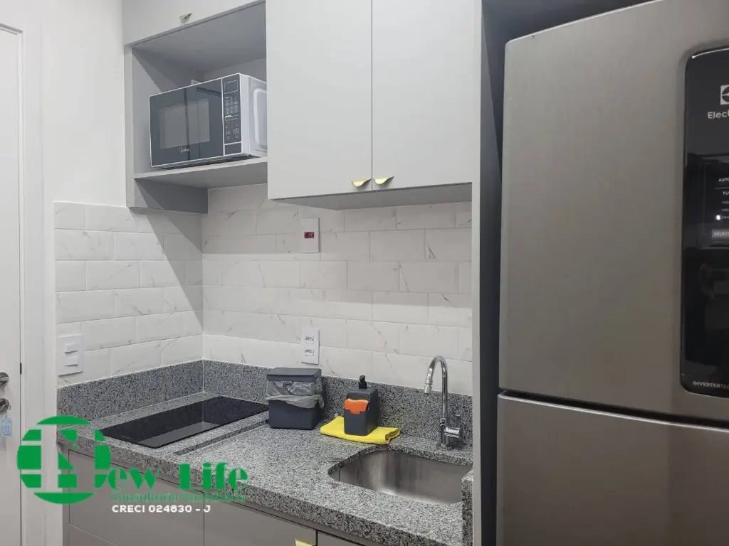 Etudio entregue totalmente mobiliado, nunca foi usado, armarios no quarto, geladeira, ar-condicionado.