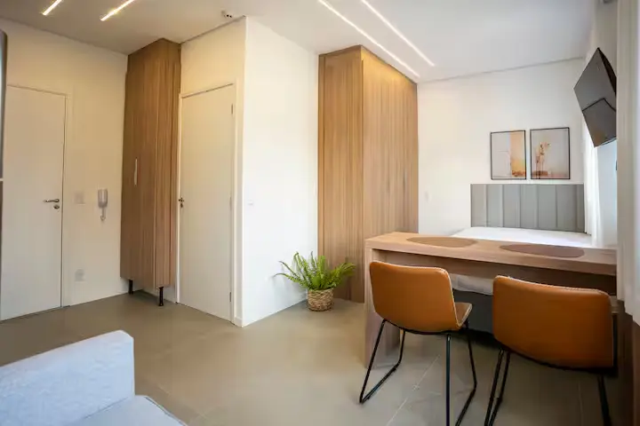 A planta otimiza os espaços, permitindo área de estar, dormitório e cozinha de forma harmoniosa, além de banheiro privativo com ótimo acabamento, perfeito para estudante, jovens profissionais ou investidores.
