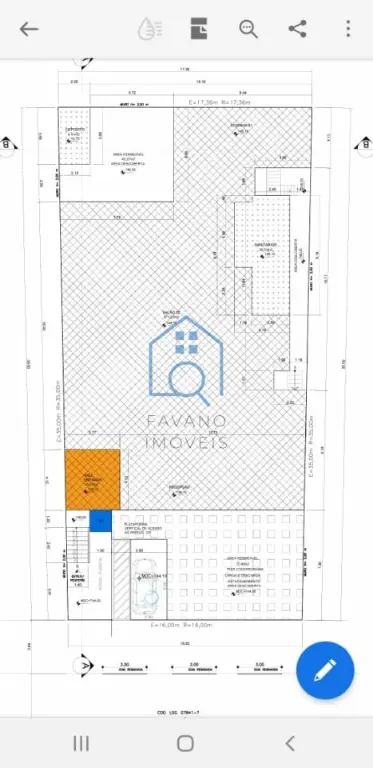 O imóvel possui terreno de 560 metros quadrados e área construída de 425 metros quadrados. As dimensões são 17 metros de frente por 35 metros de profundidade, proporcionando ótima visibilidade comercial.