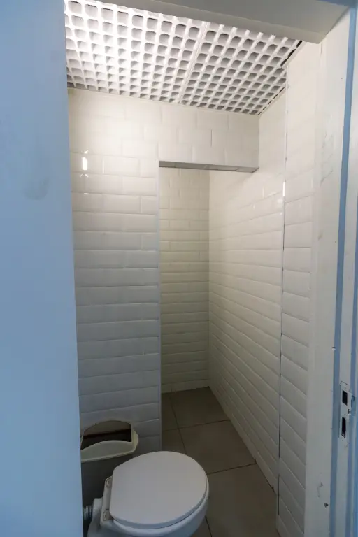 Dois banheiros, que atendem confortavelmente funcionários e clientes