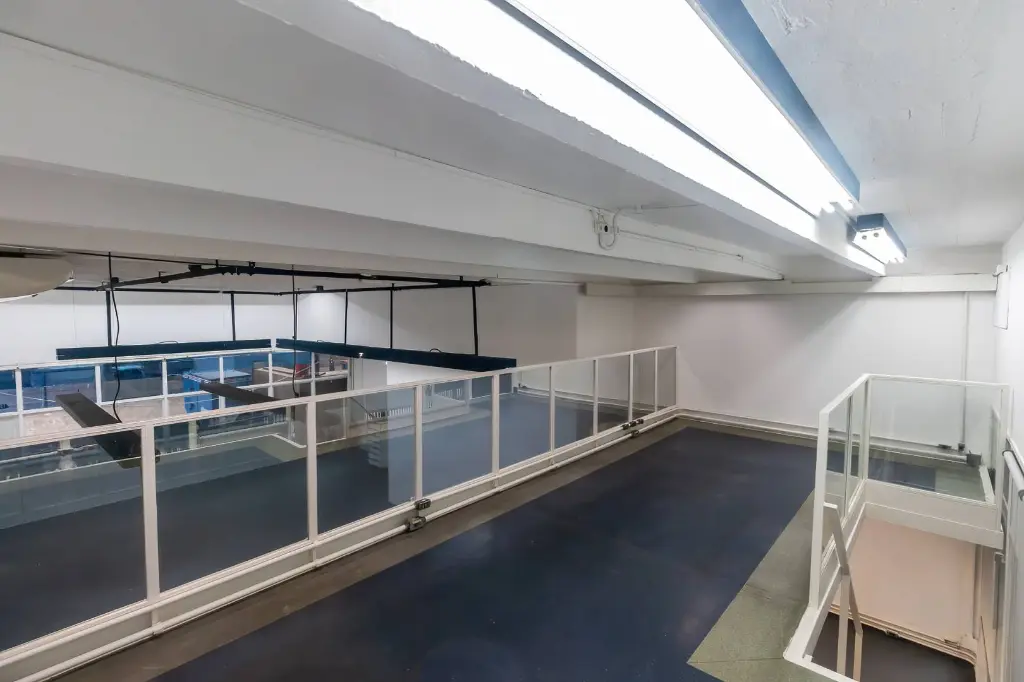 Um mezanino funcional, perfeito para escritório, estoque ou área administrativa