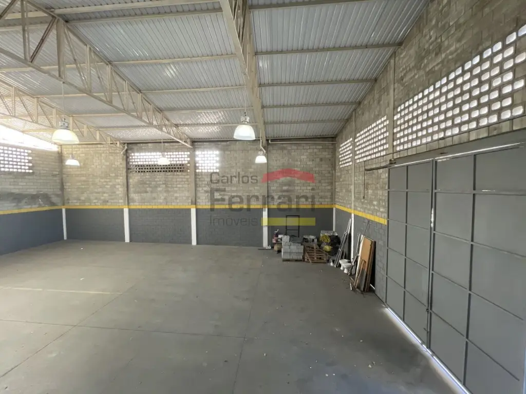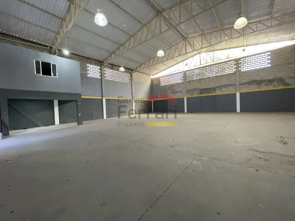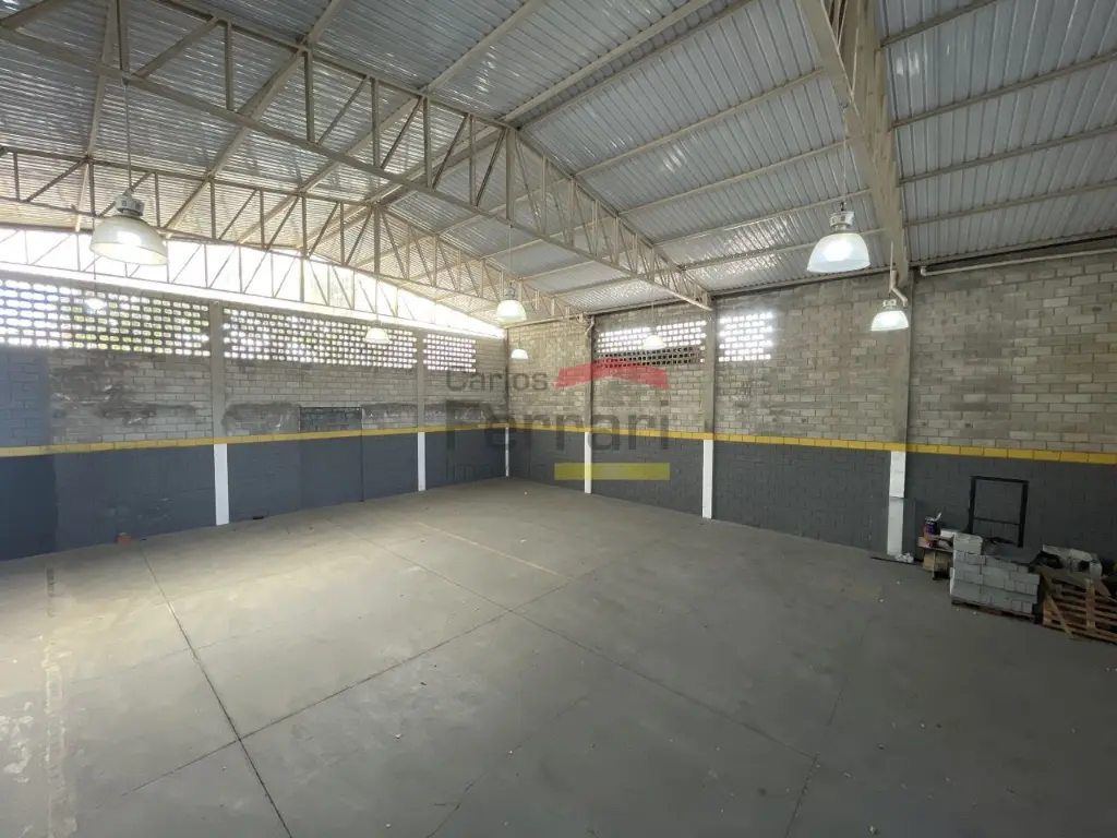Pé direito de 8 metros, proporcionando ótima circulação de ar e viabilidade para instalação de ponte rolante, empilhadeiras ou estruturas verticais de armazenagem;