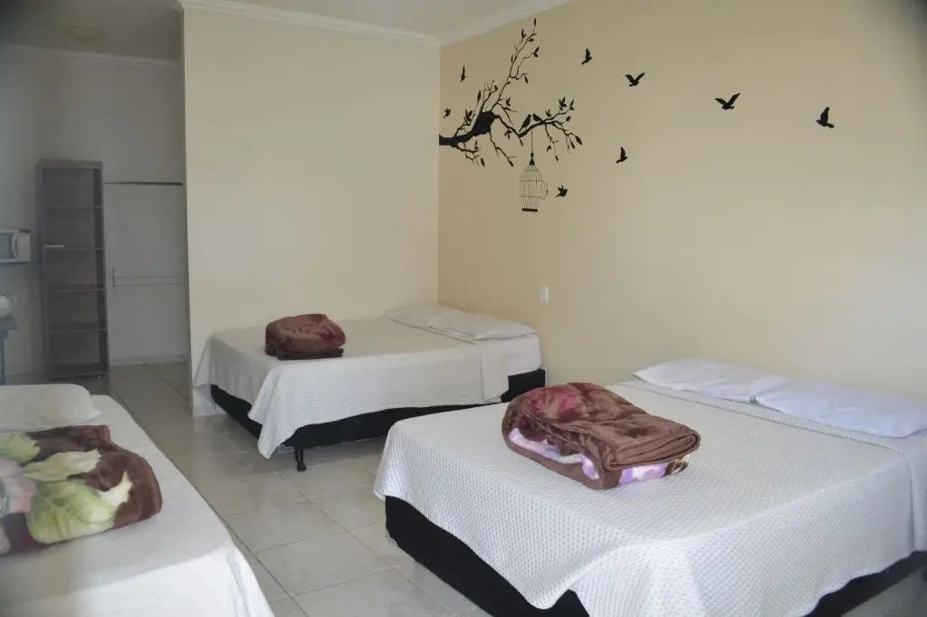 Todos os quartos são bem amplos e acomodam bem de 5 a 6 pessoas