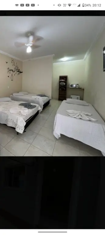 Todos os quartos tem frigobar, microondas ventilador de teto