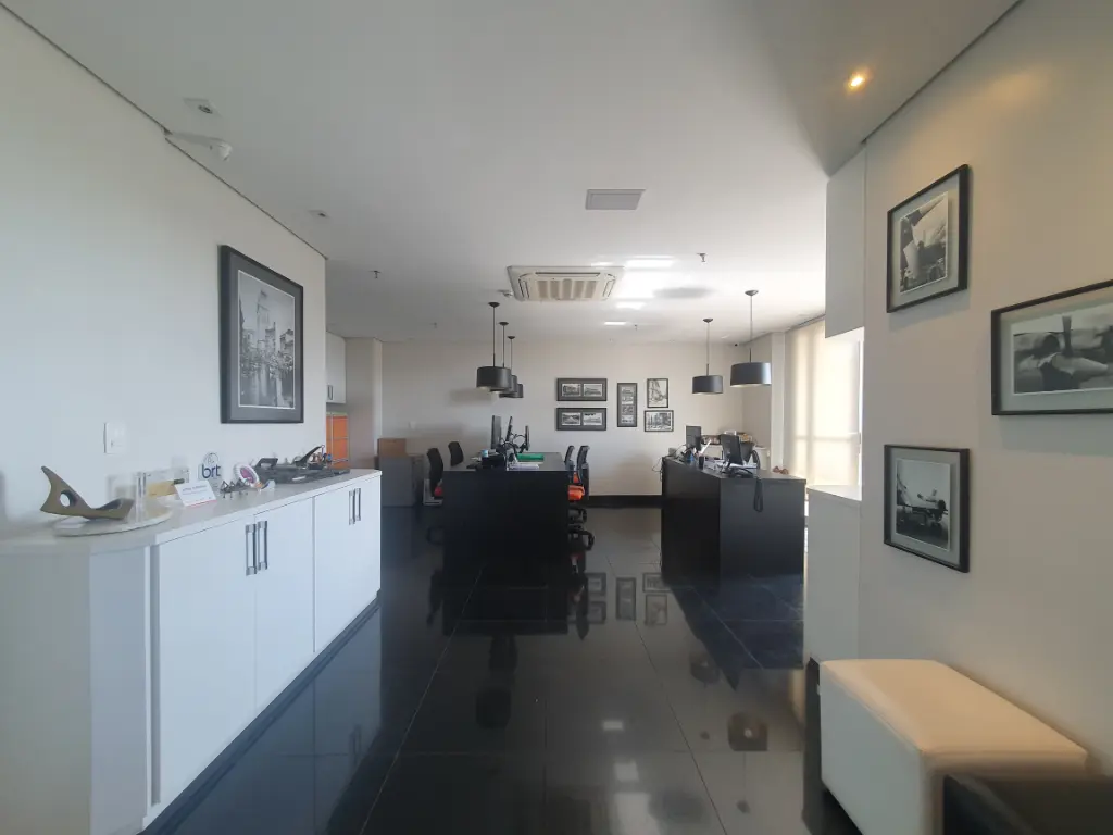 O espaço possui ar-condicionado central, câmeras de monitoramento, piso elevado em granito e oferece seis vagas de garagem, ideal para escritórios, consultórios ou empresas que desejam se estabelecer em um endereço de prestígio.