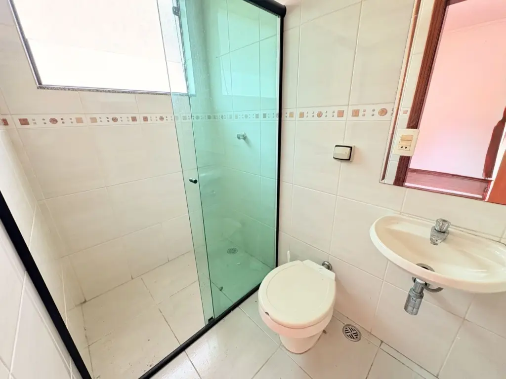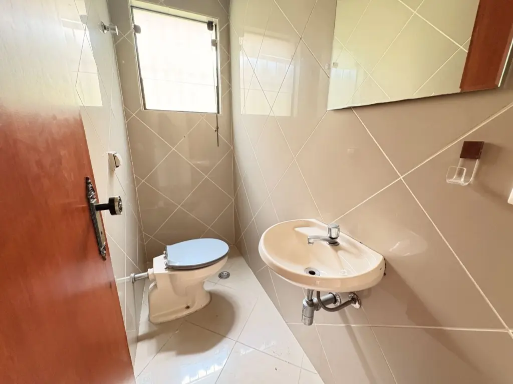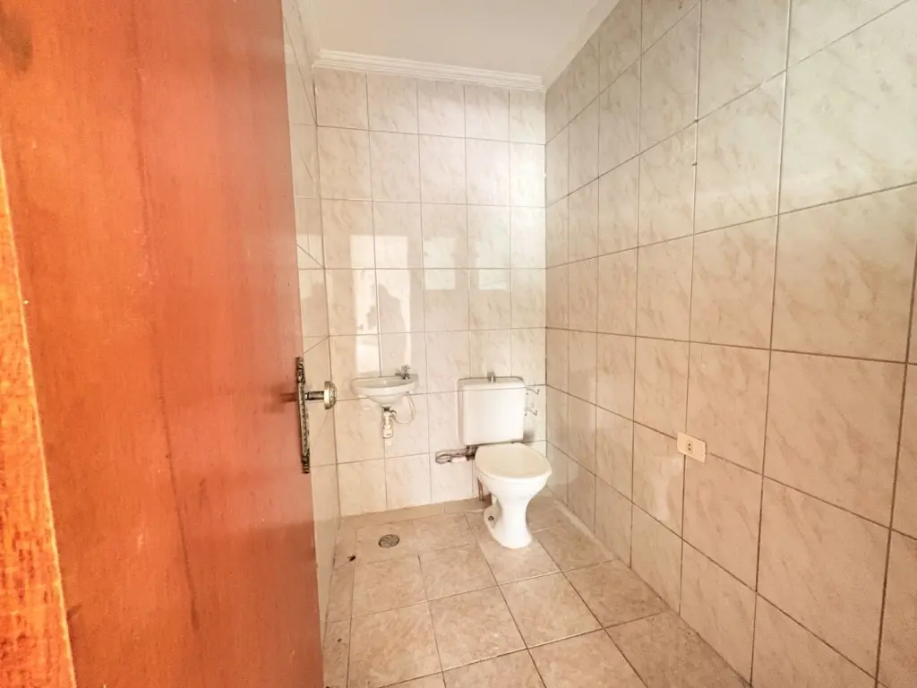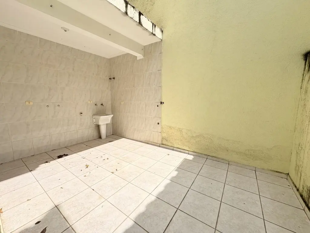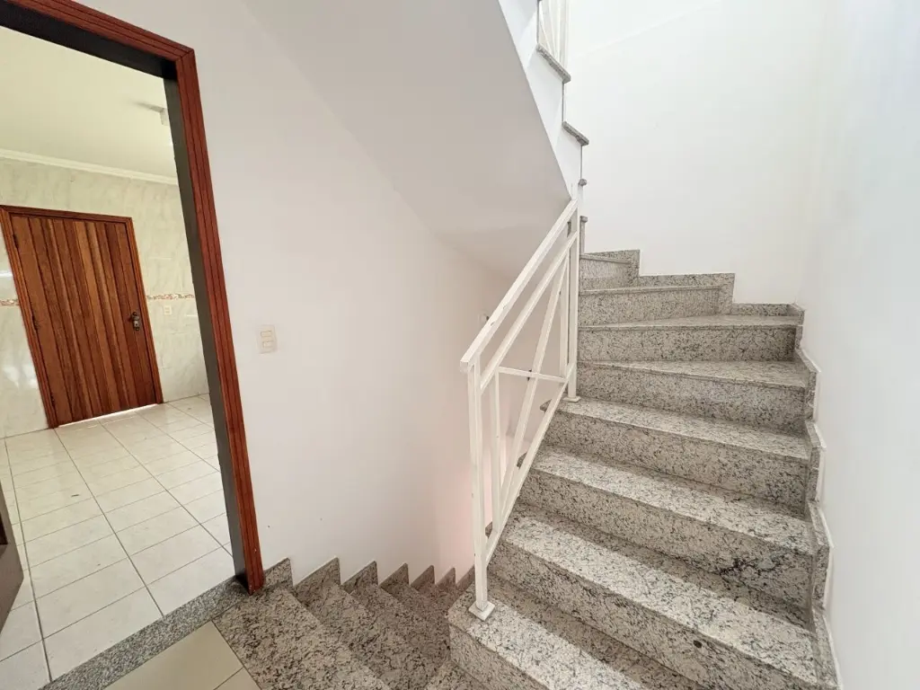 Sobrado com 3 suítes, 1 com varanda, 4 banheiros, salão de festas com banheiro e depósito, área de serviço coberta, corredor na lateral e quintal.