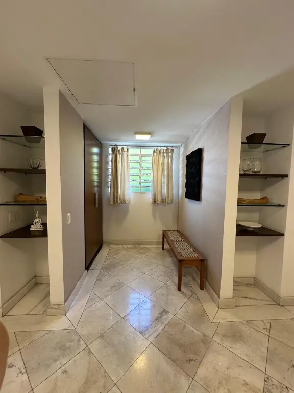 Para o suporte da casa, duas suítes exclusivas para funcionários garantem privacidade e comodidade. A despensa bem planejada facilita a organização de mantimentos e utensílios, mantendo a cozinha sempre funcional.