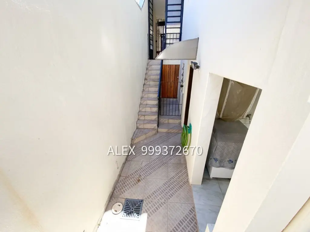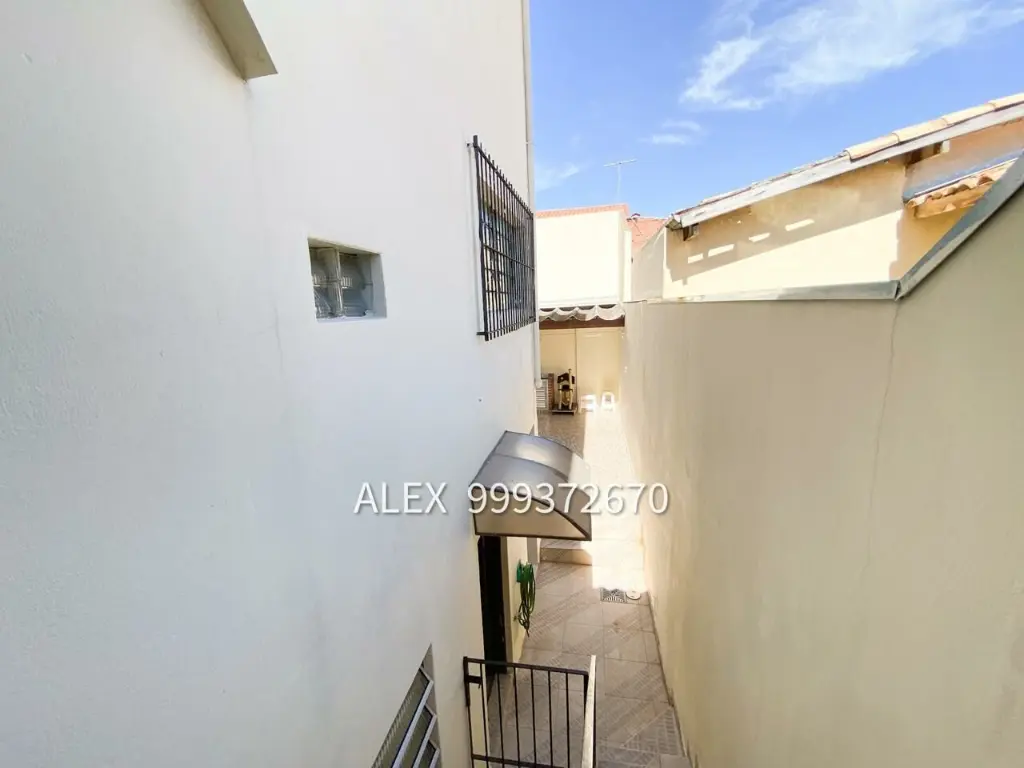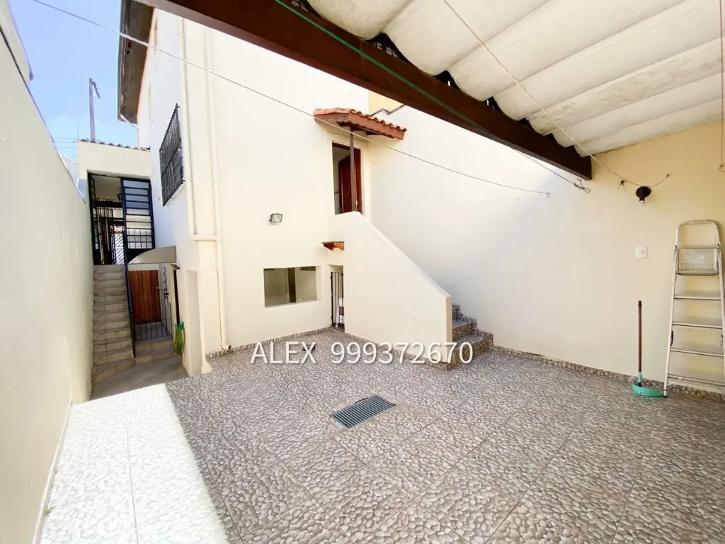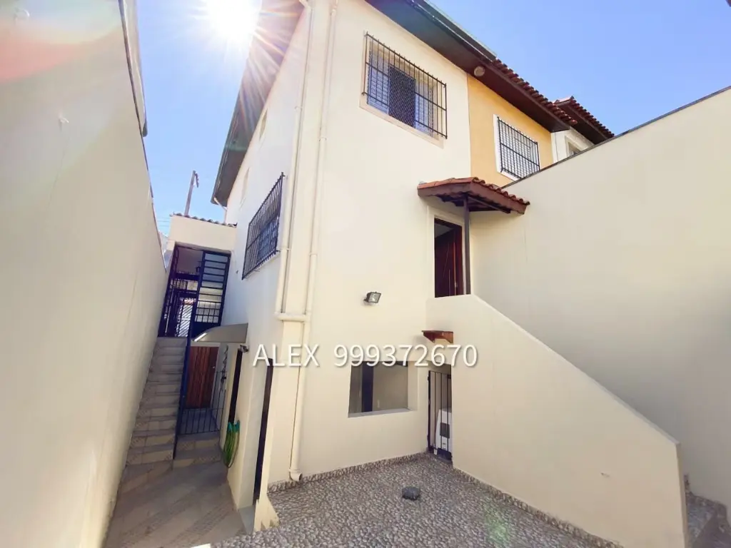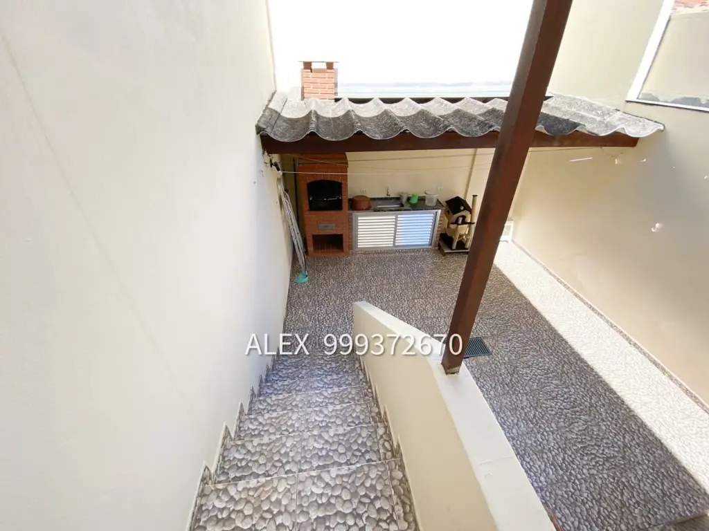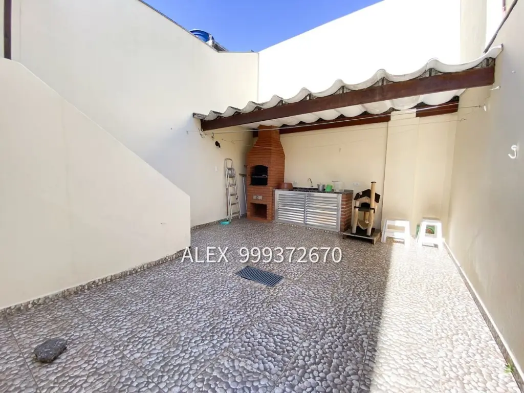 Sobrado com 2 dormitórios, 2 vagas de garagem, sala de estar, cozinha com armários, 1 banheiro que atende os dormitórios, quintal com churrasqueira, quartinho na área do quintal, área de serviço, lavabo, 1 banheiro ao lado da área de serviço.