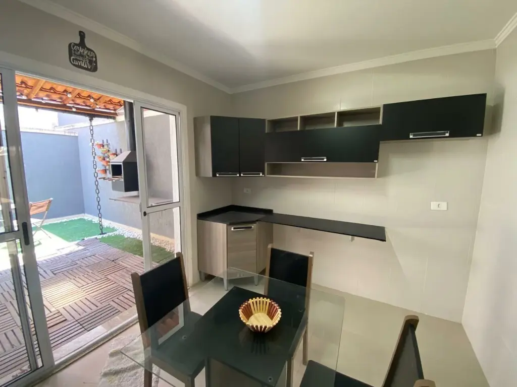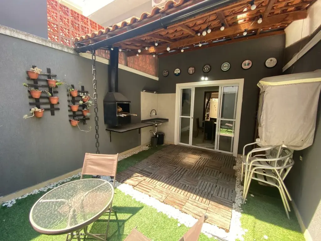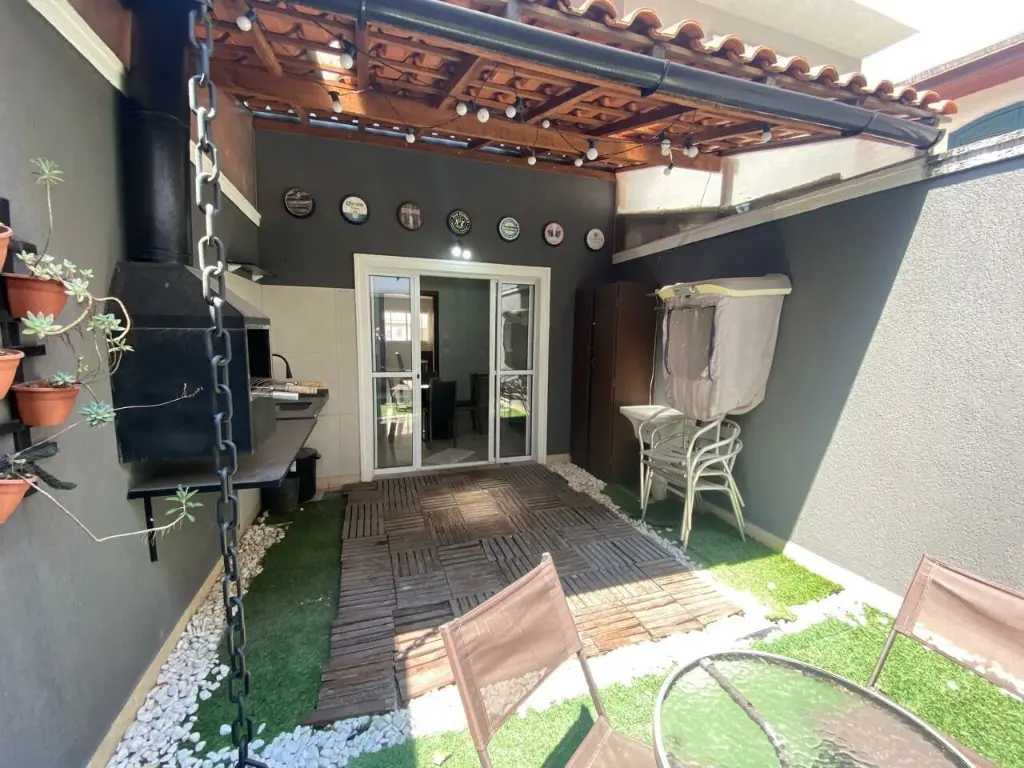 Com 2 suítes com ar condicionado, sala ampla para dois ambientes, cozinha com planejados, área gourmet, lavanderia, 2 vagas de garagem coberta portão automático.