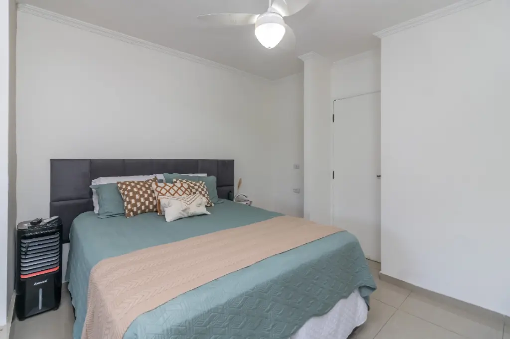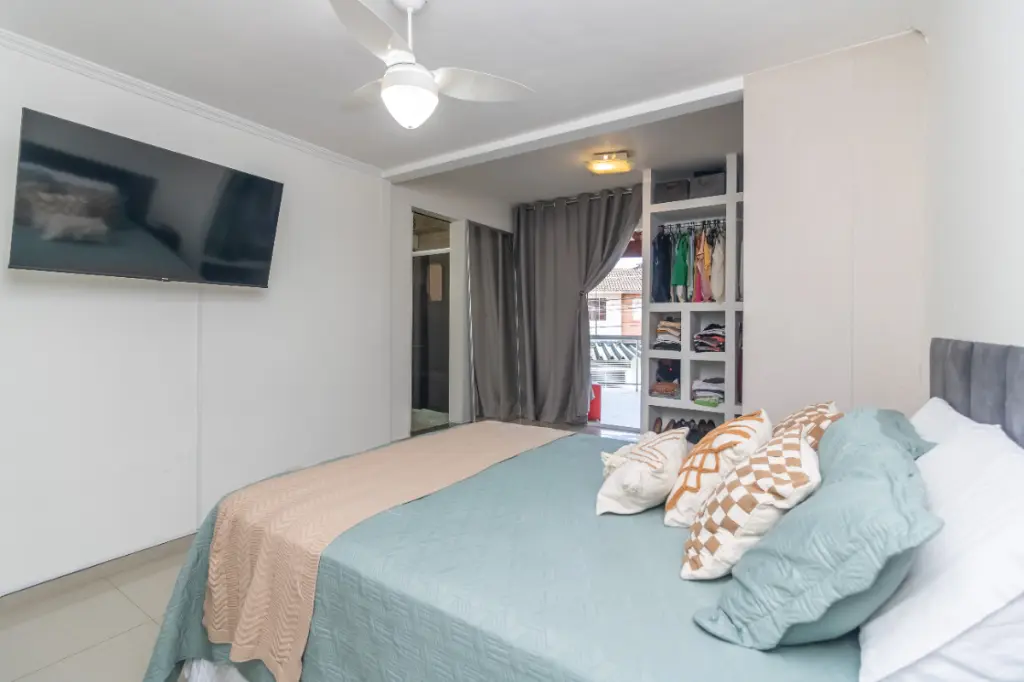 Conforto e Funcionalidade: Com 92m² de área construída, o imóvel oferece uma distribuição inteligente. A sala e a cozinha são integradas, proporcionando um ambiente social acolhedor. A cozinha e a suíte contam com móveis planejados, otimizando cada espaço com elegância.