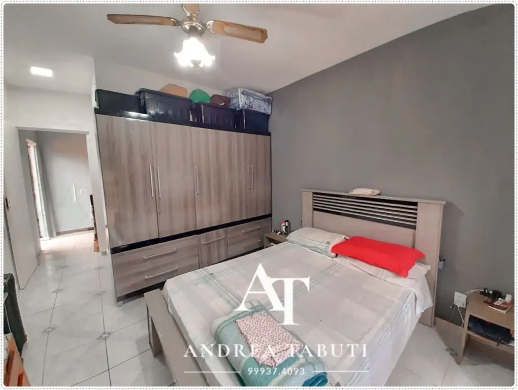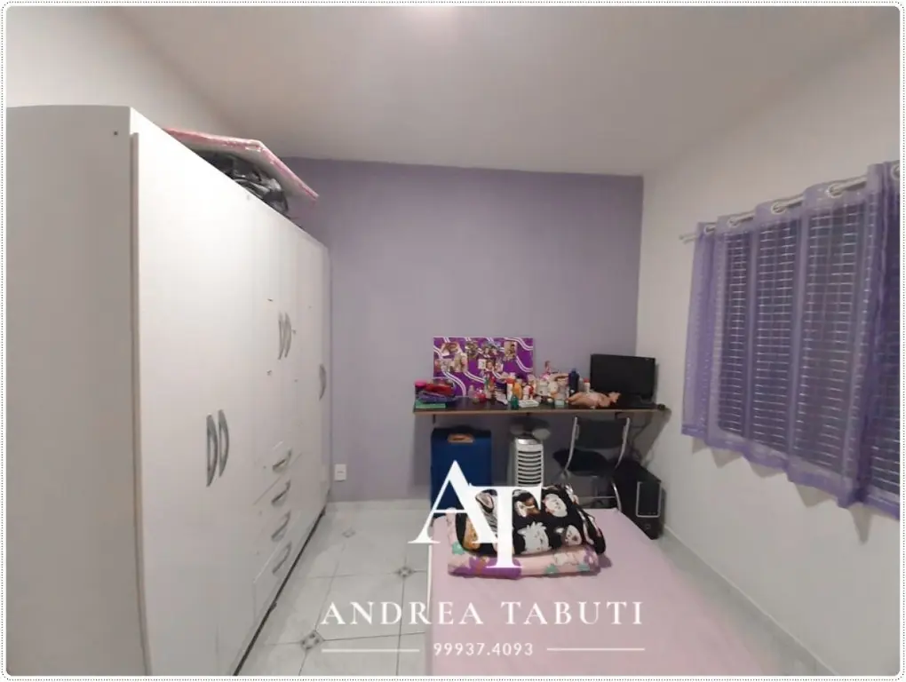 3 dormitorios com 1 suite, possui 2 vagas de garagem, cozinha com armários planejados, sala para 2 ambientes, quintal.
