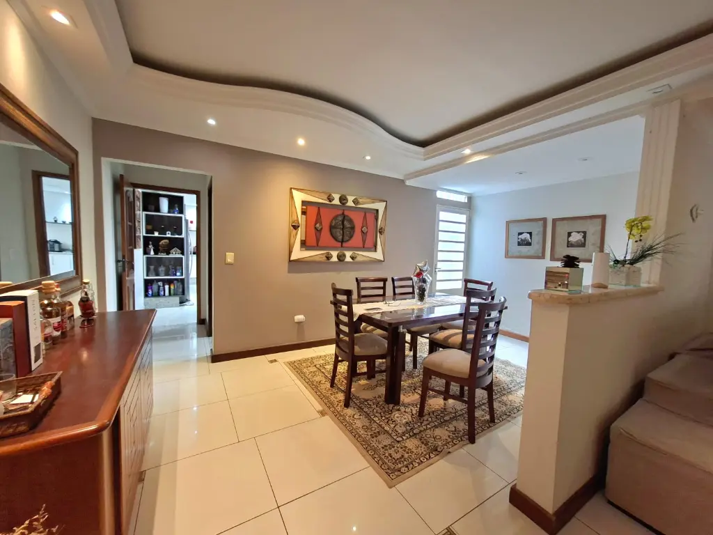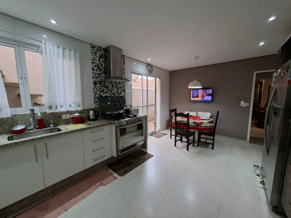 A cozinha é moderna e funcional, ideal para o dia a dia. O sobrado possui ainda 2 varandas, espaço com churrasqueira para lazer e garagem coberta para 2 veículos.